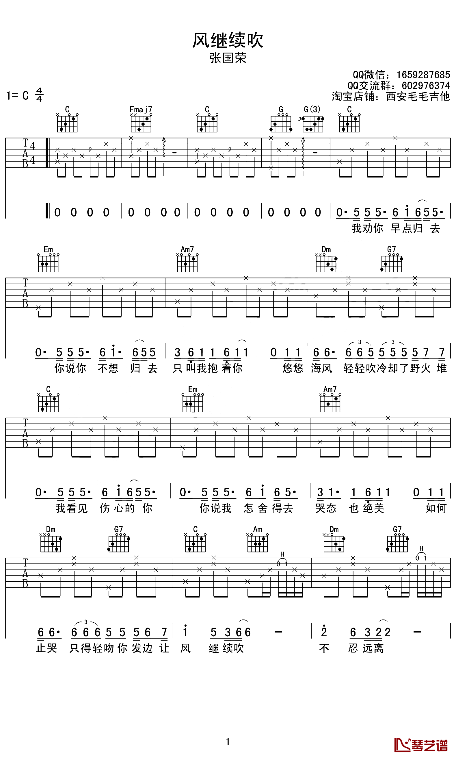 风继续吹吉他谱 - 张国荣 - 吉他独奏谱
