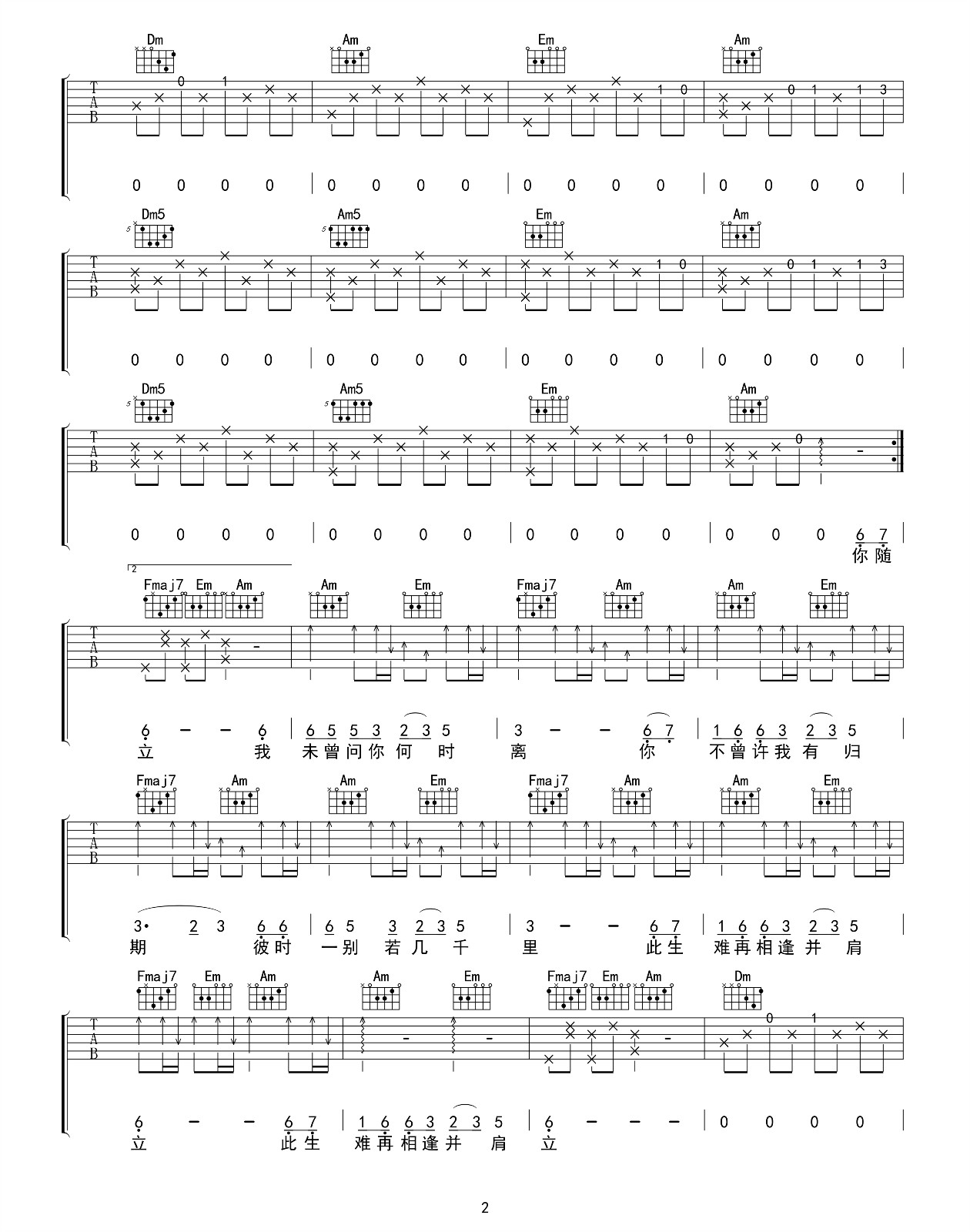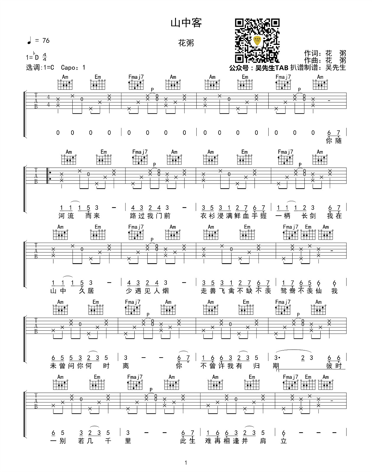 山中客吉他谱 - 花粥 - 吉他独奏谱