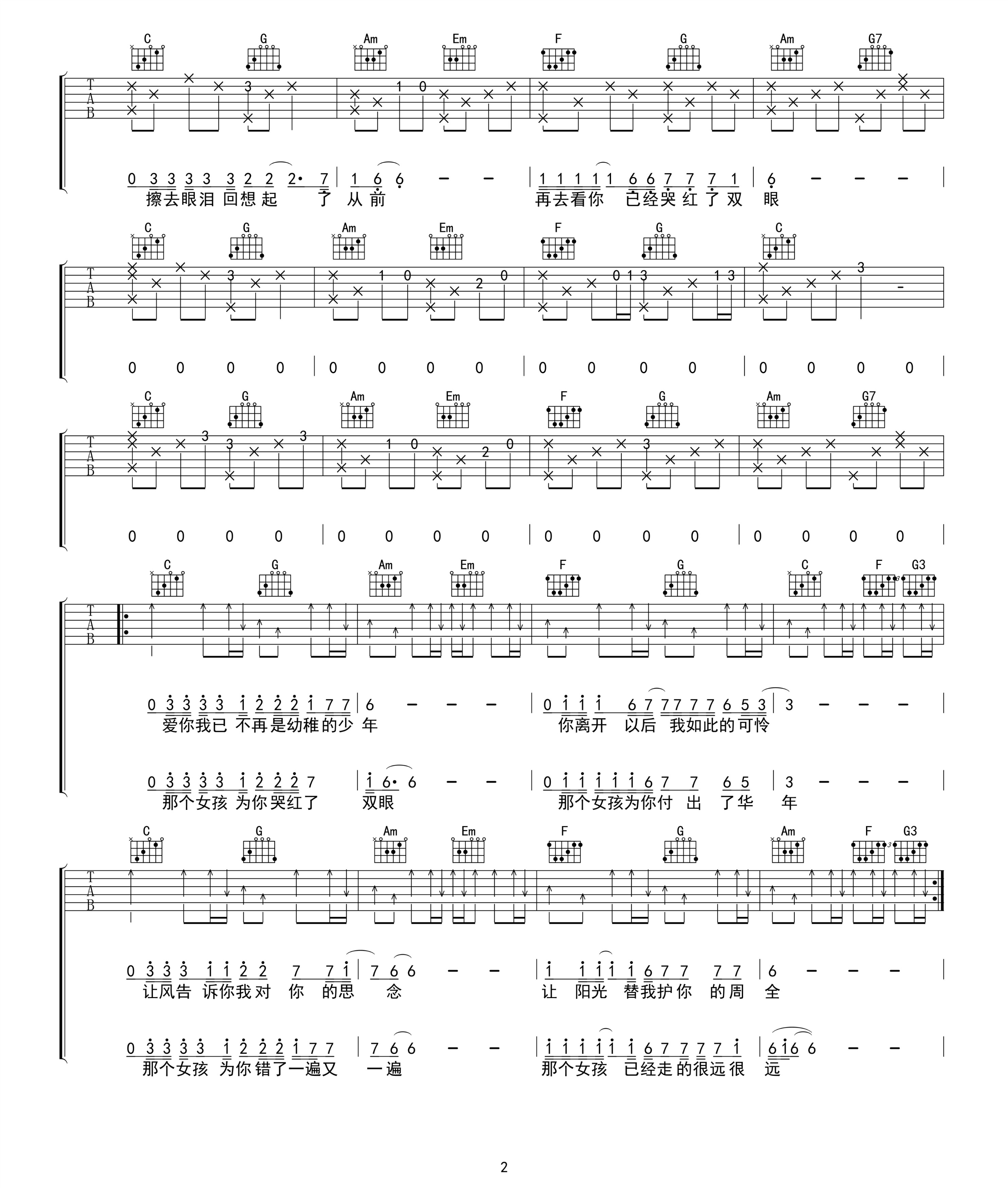 当前位置:琴谱网>吉他独奏>那个女孩