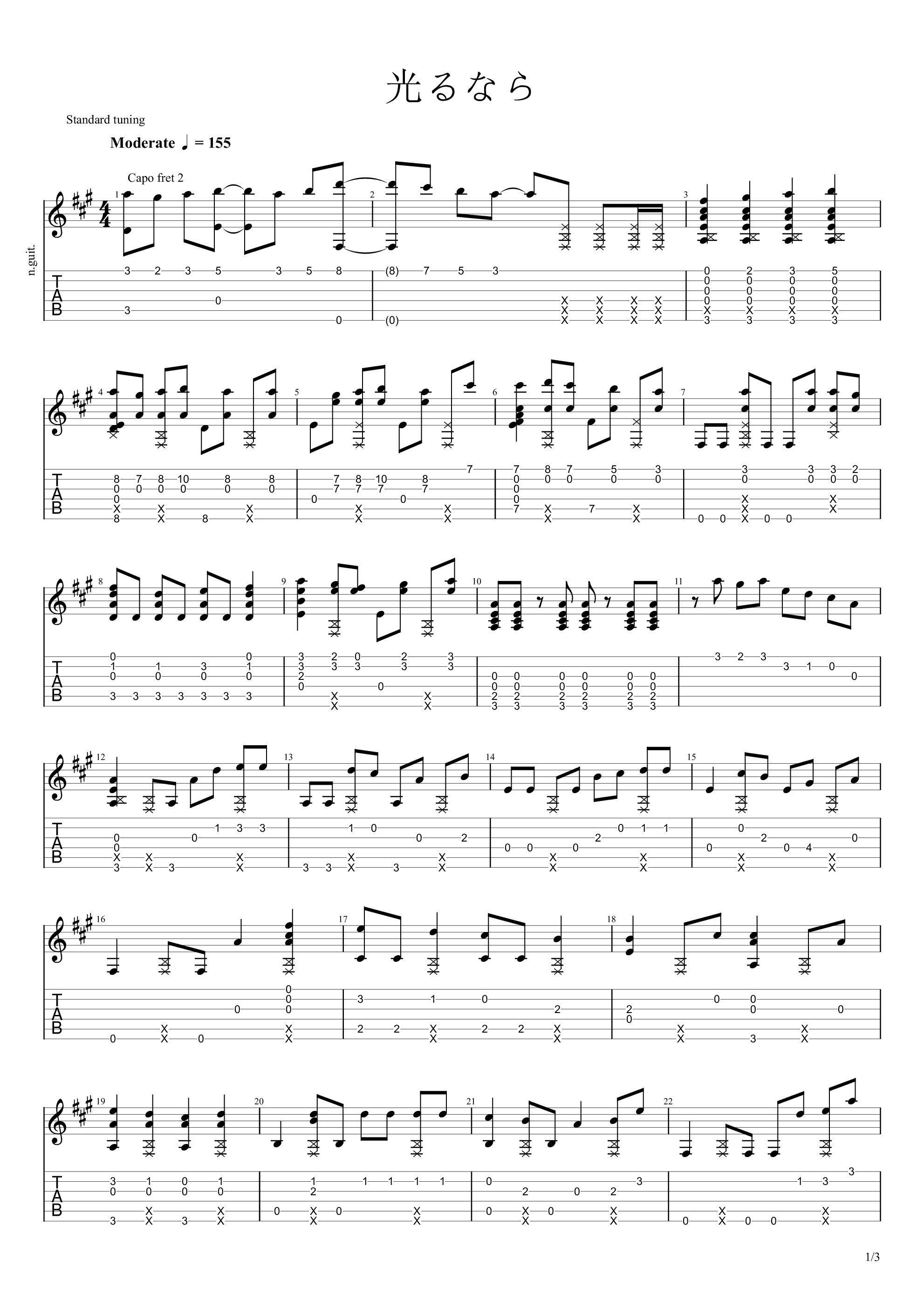 曲谱介绍: 动漫游戏:四月是你的谎言op《动漫游戏:四月是你的谎言op-光るなら(若能绽放光芒)》吉他弹唱谱,共有3张高清图谱。