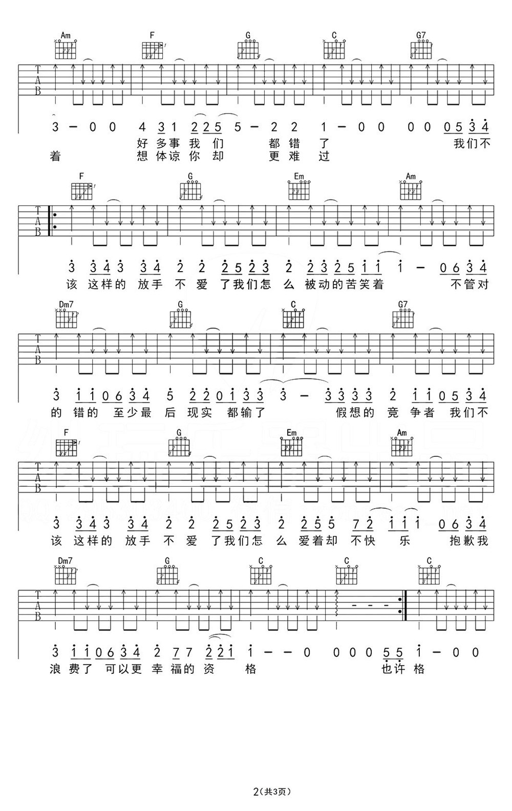 我们不该这样的吉他谱 - 张赫宣 - 吉他弹唱谱