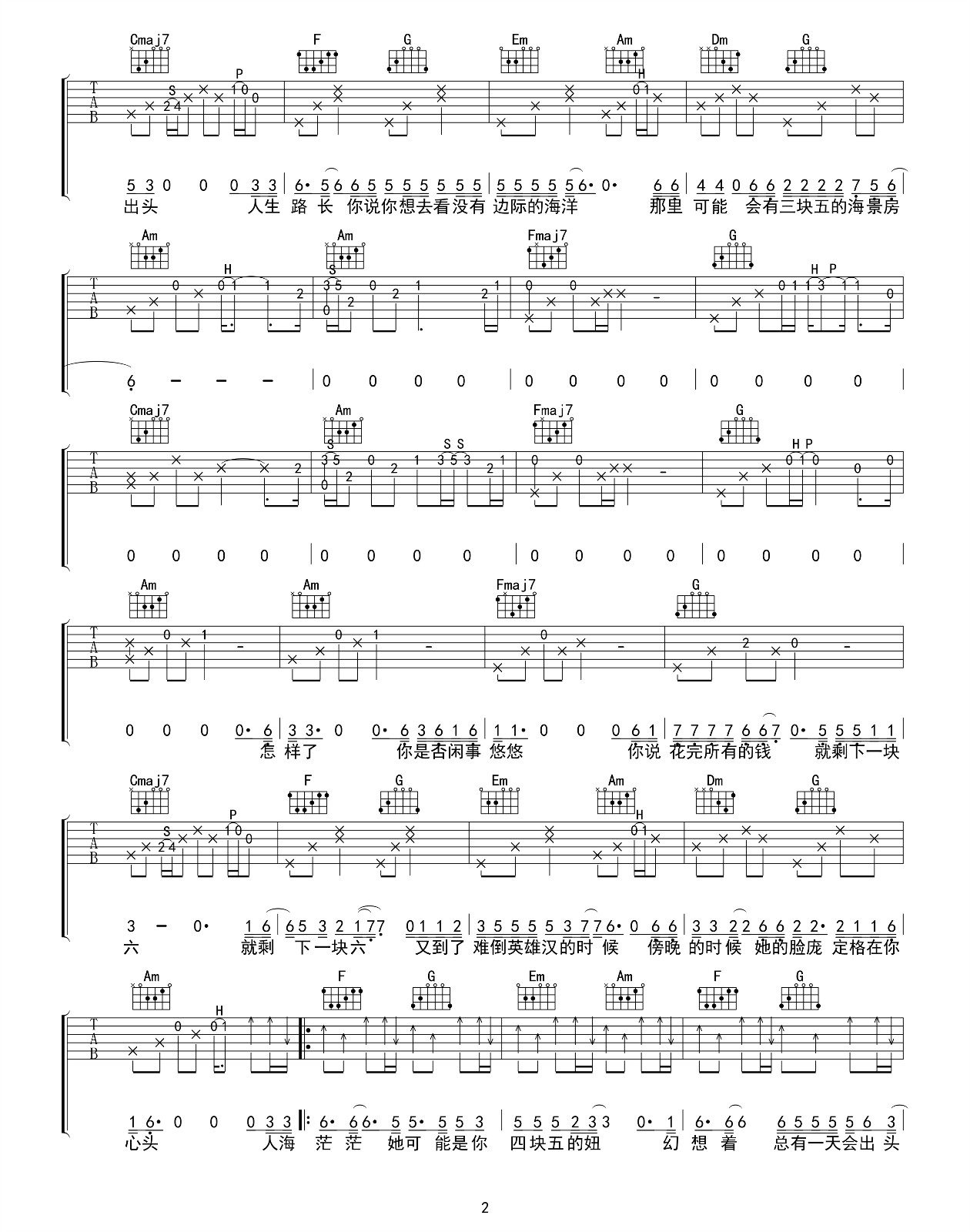 四块五吉他谱 - 隔壁老樊 - 吉他弹唱谱