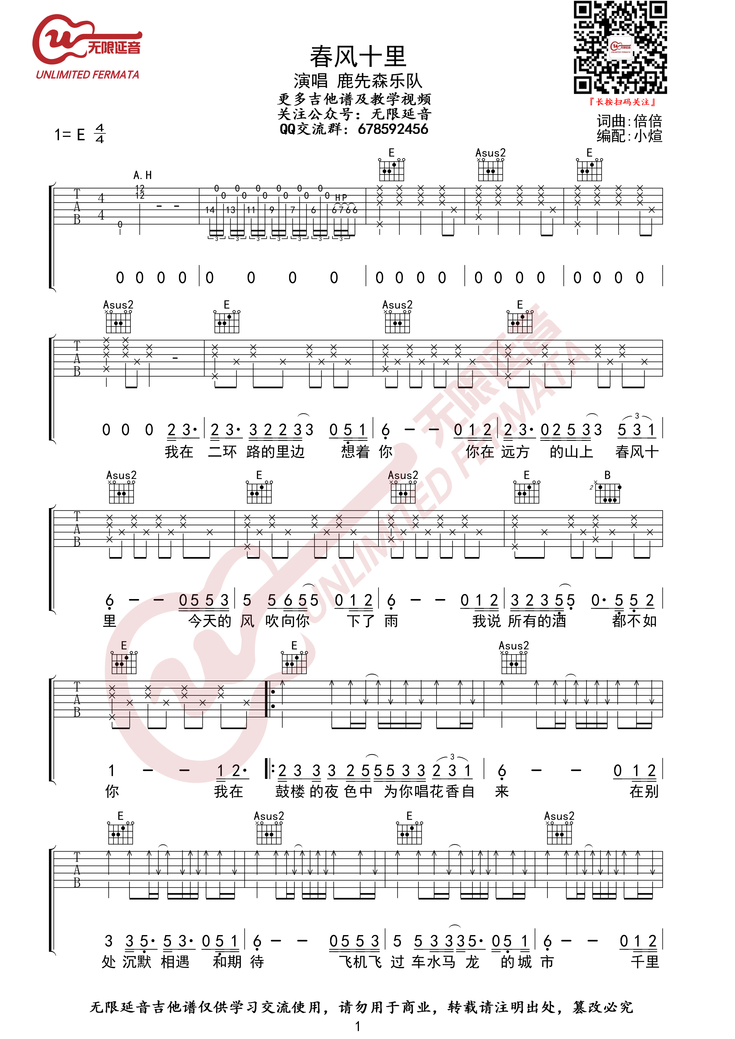 春风十里吉他谱 - 鹿先森乐队 - 吉他弹唱谱