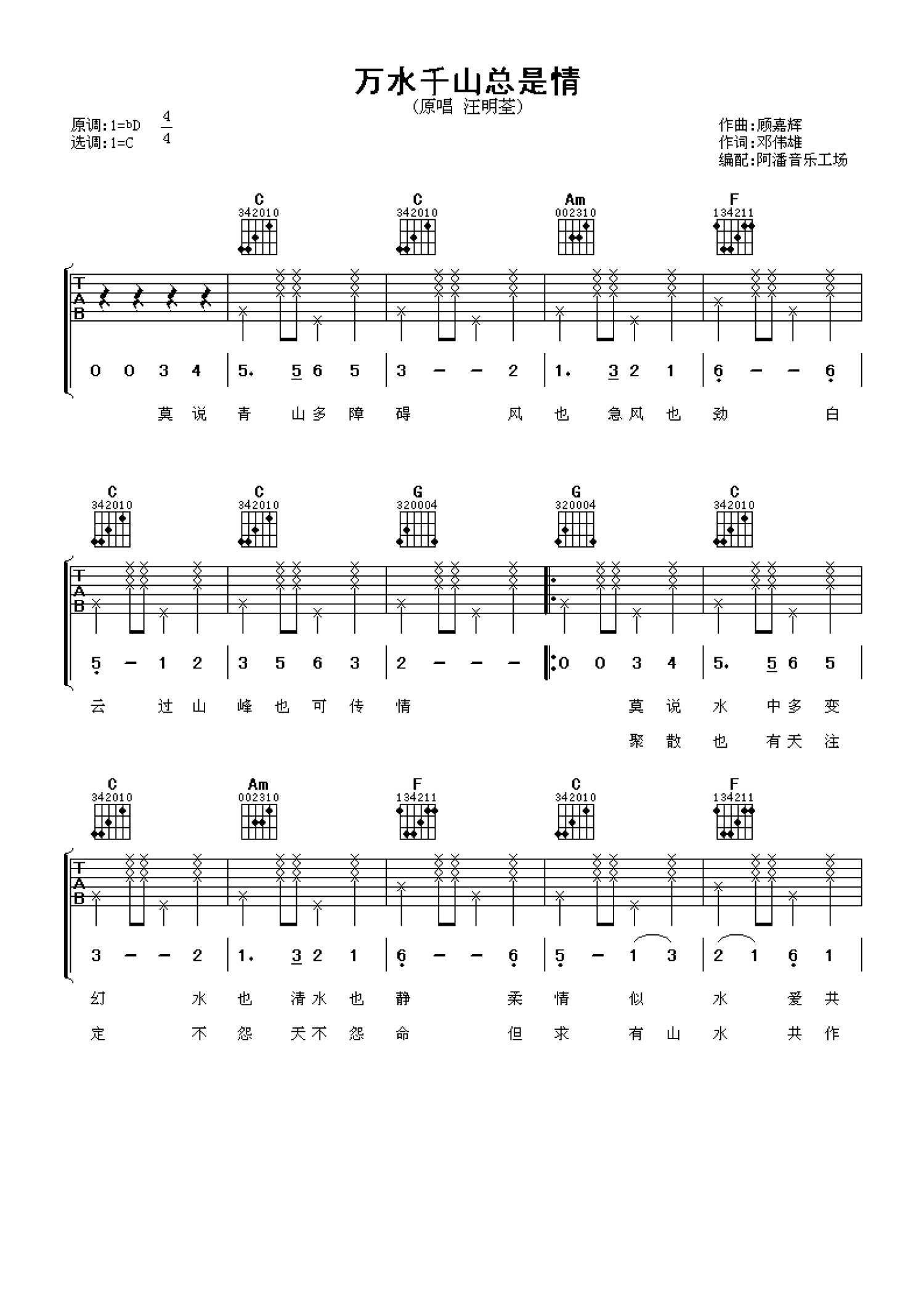 万水千山总是情吉他谱 - 汪明荃 - C调吉他弹唱谱