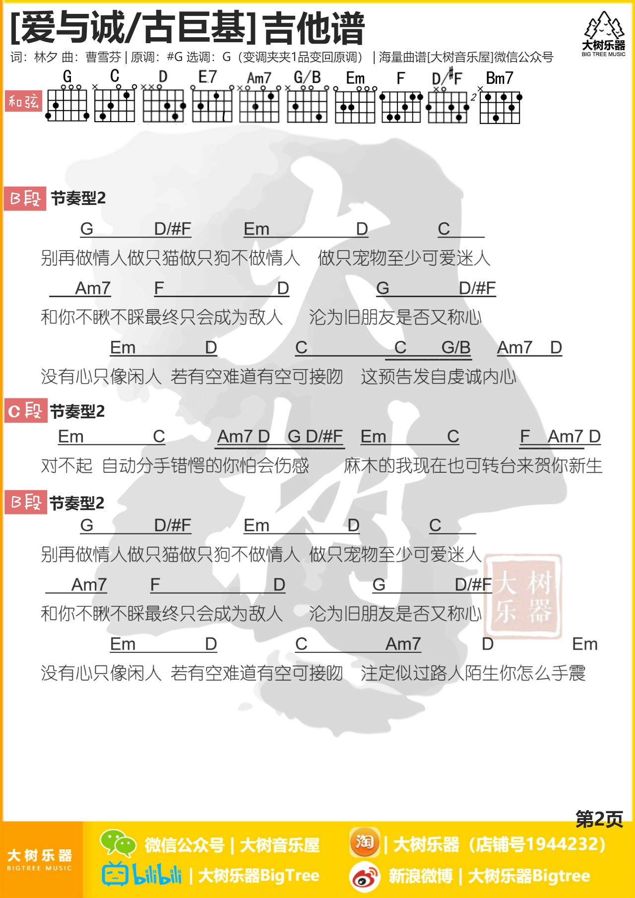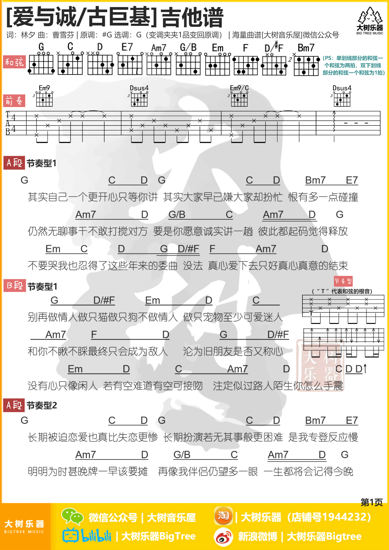 当前位置:琴谱网>吉他弹唱>爱与诚