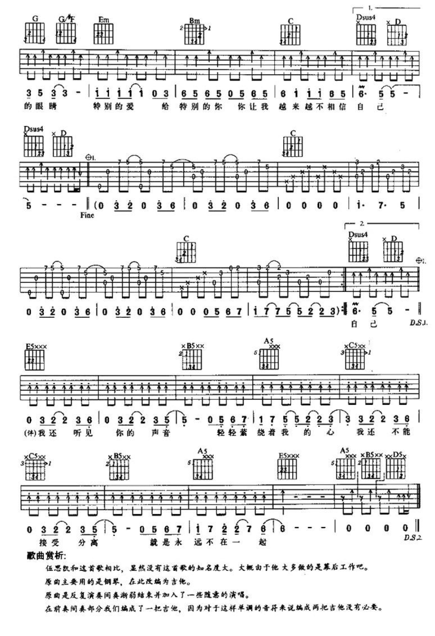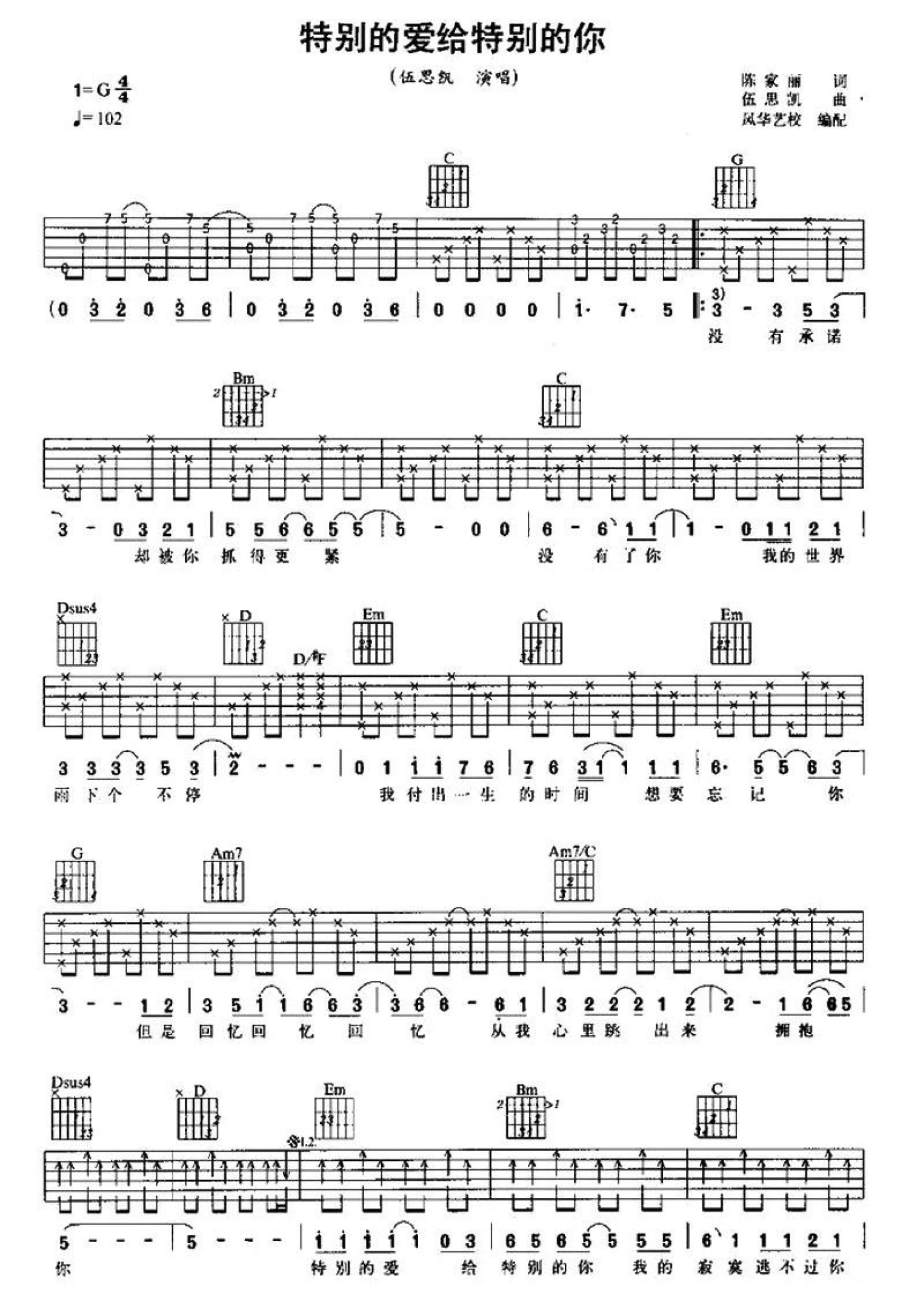 特别的爱给特别的你吉他谱 - 伍思凯 - G调吉他弹唱谱