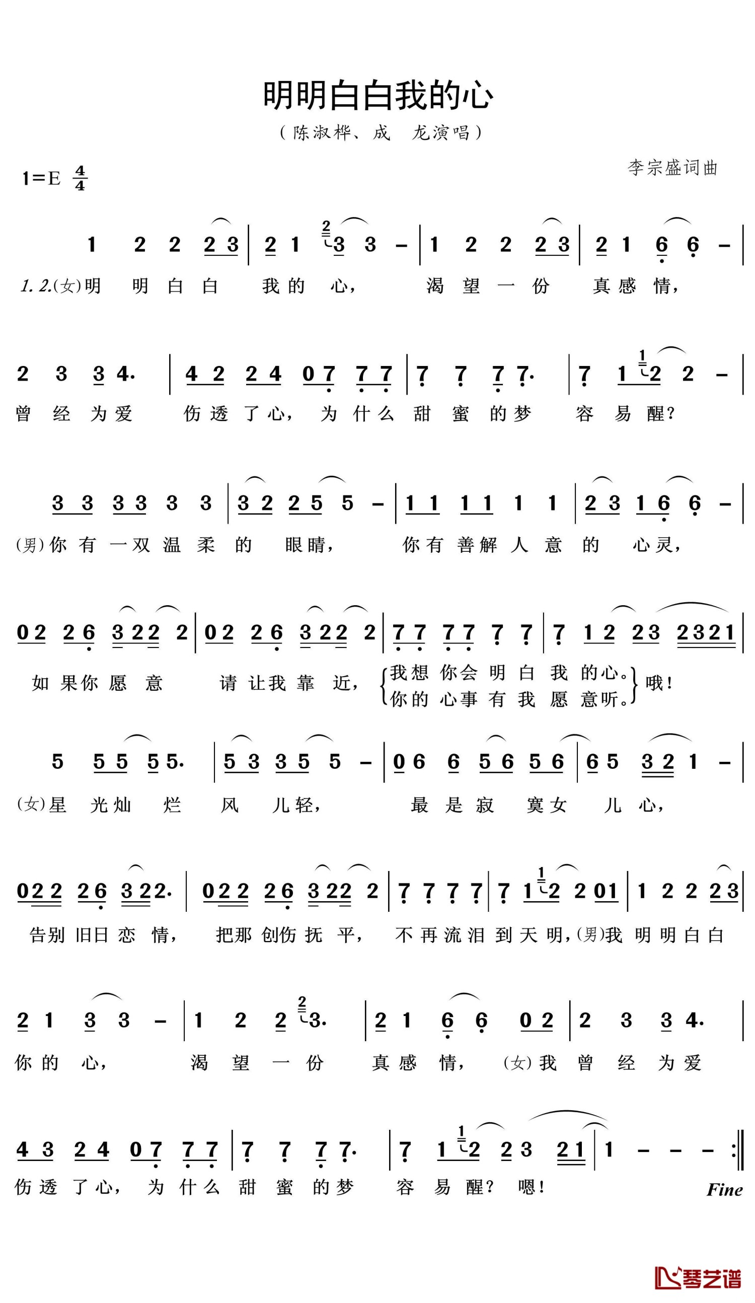 琴谱网为您精心推荐 明明白白我的心 高清图谱