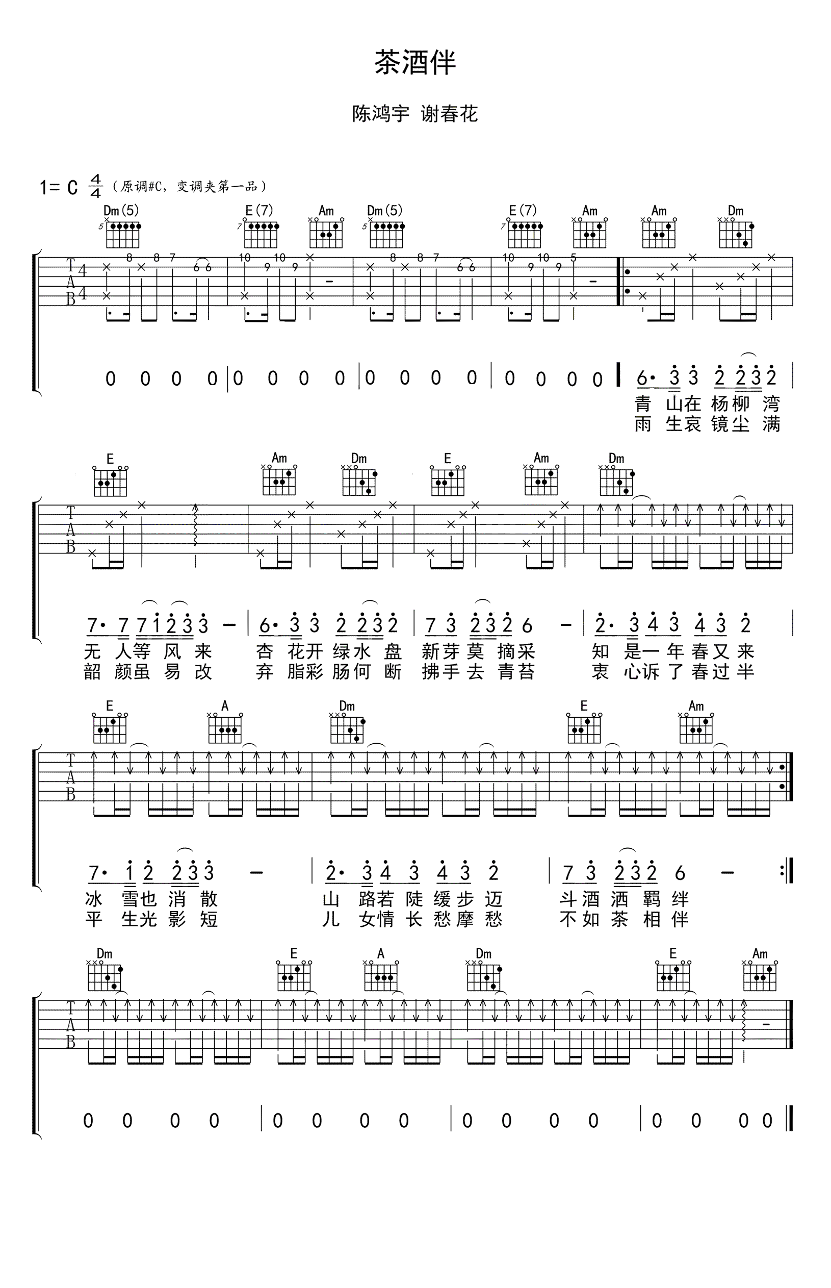 茶酒伴吉他谱 - 谢春花 - 吉他独奏谱