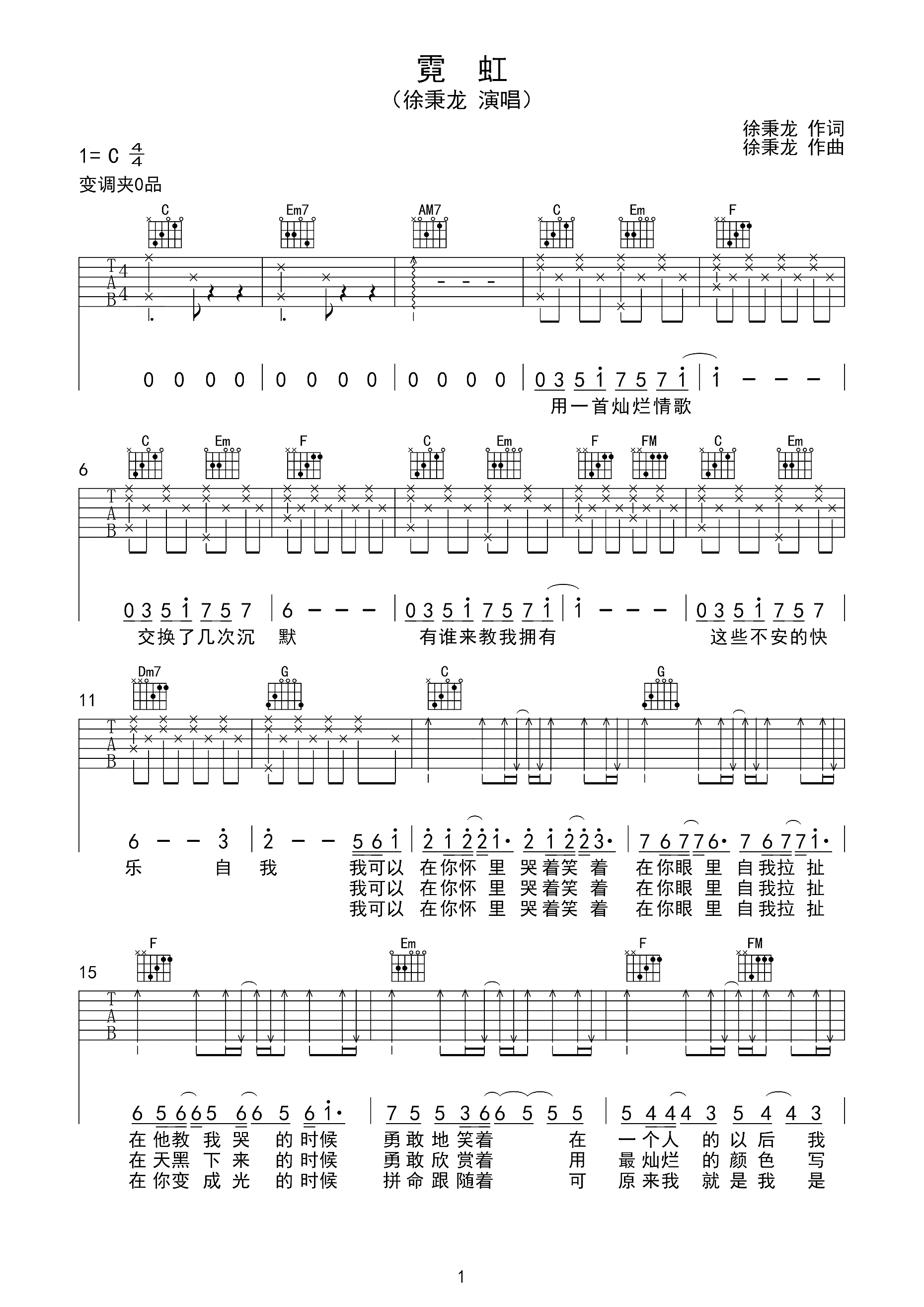 霓虹吉他谱 - 徐秉龙 - 吉他弹唱谱