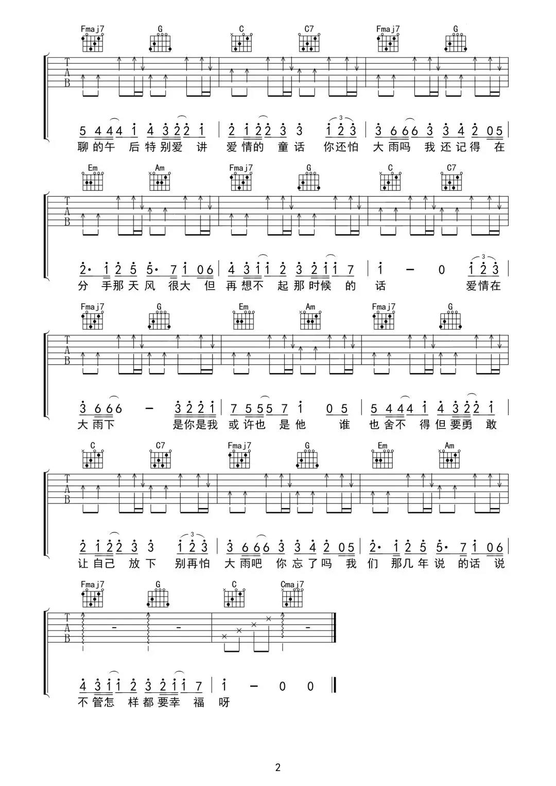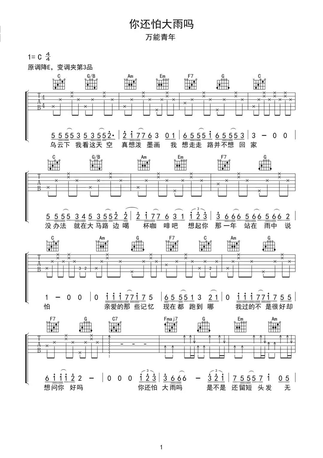 你还怕大雨吗吉他谱 - 万能青年 - 吉他独奏谱