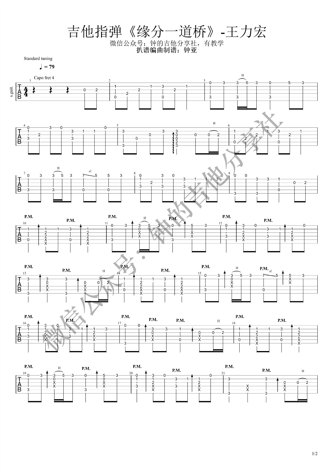 缘分一道桥吉他谱 - 王力宏 - 吉他独奏谱