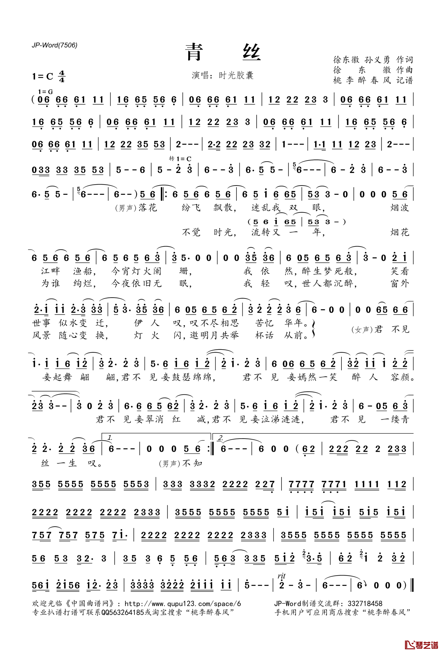 曲谱介绍: 时光胶囊《青丝》歌词_简谱