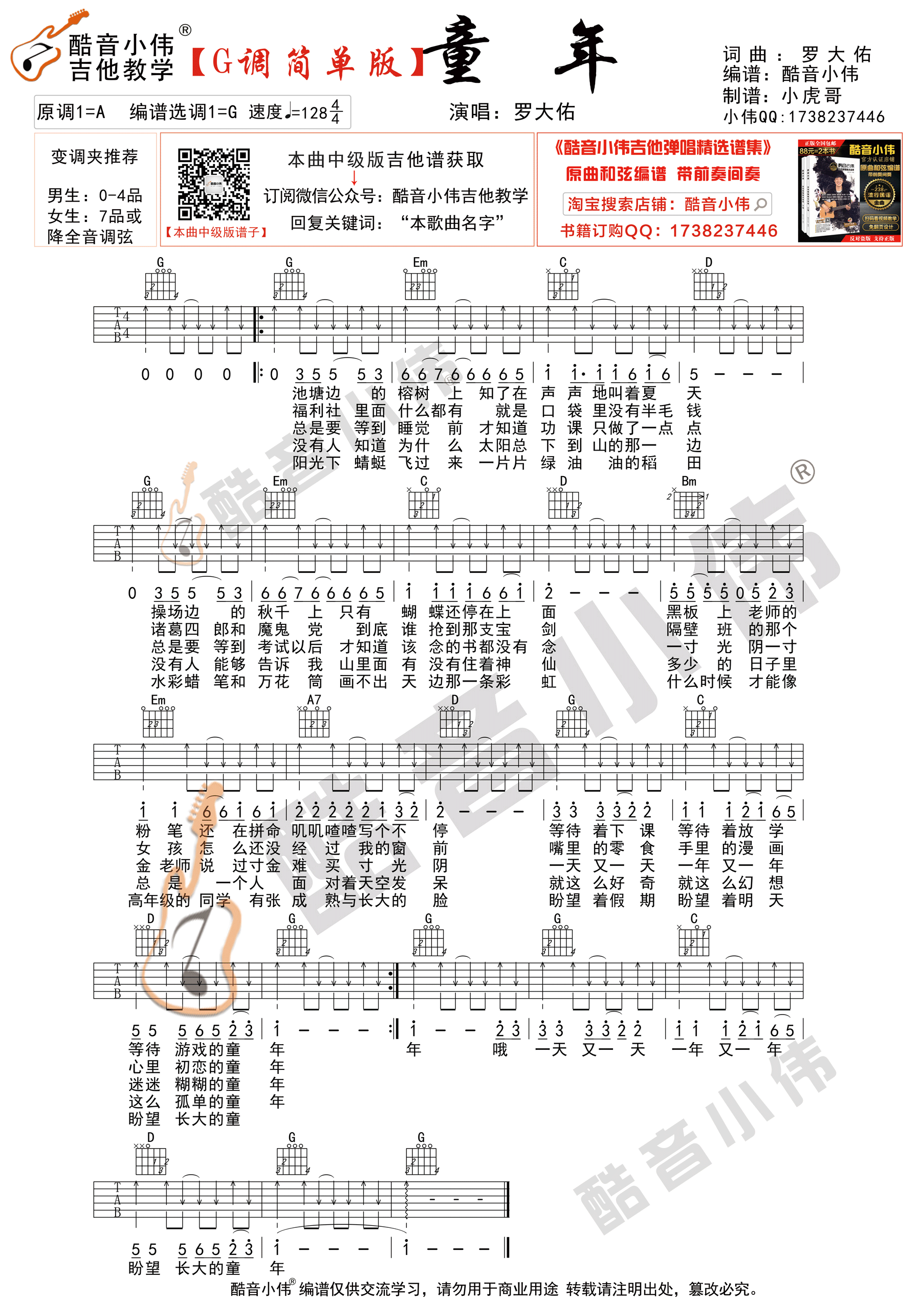 童年吉他谱 - 罗大佑 - G调吉他弹唱谱