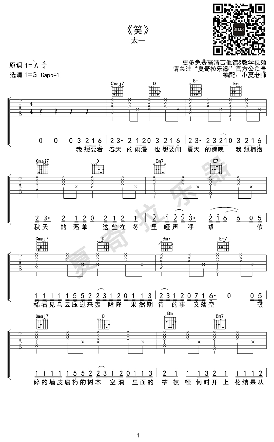 笑吉他谱 - 太一 - 吉他弹唱谱