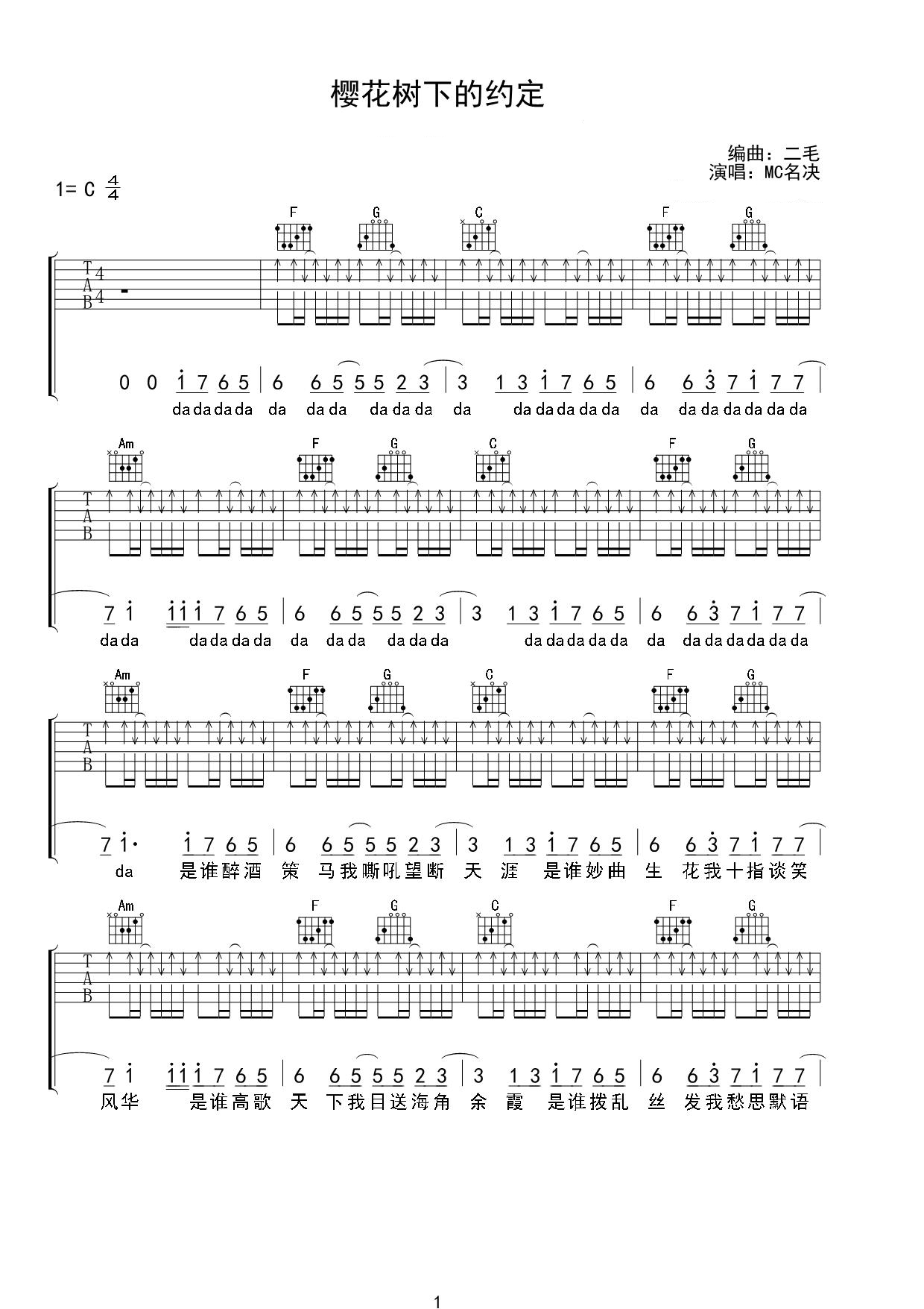樱花树下的约定吉他谱 - MC名诀 - 吉他独奏谱