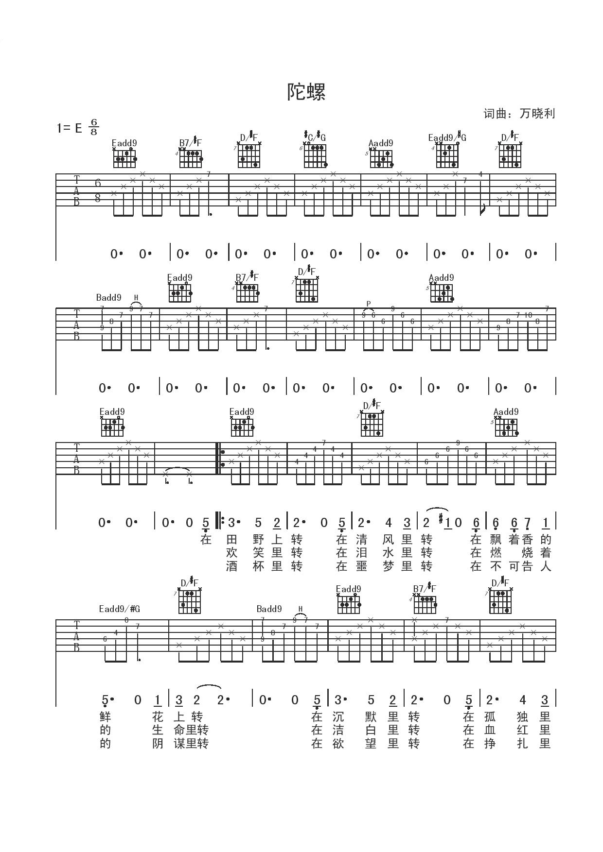 陀螺吉他谱 - 万晓利 - 吉他独奏谱