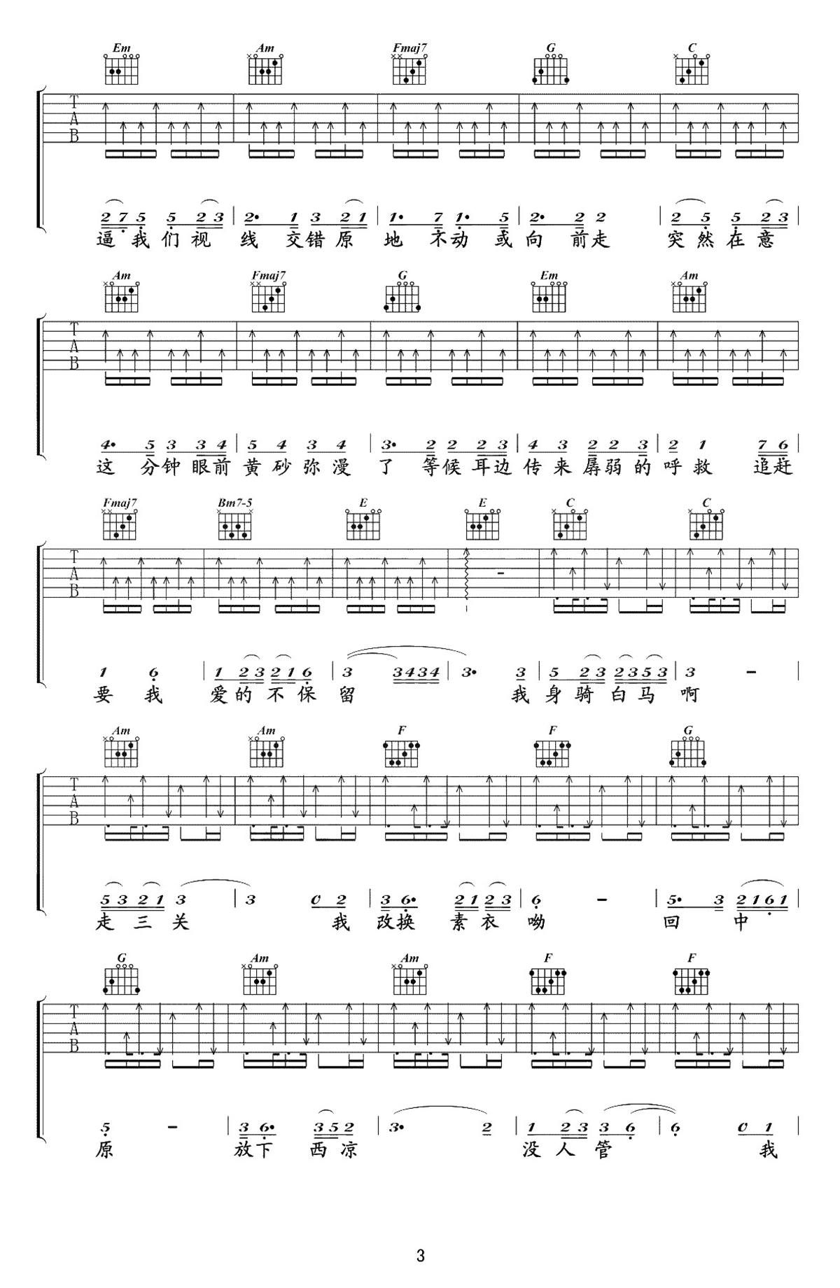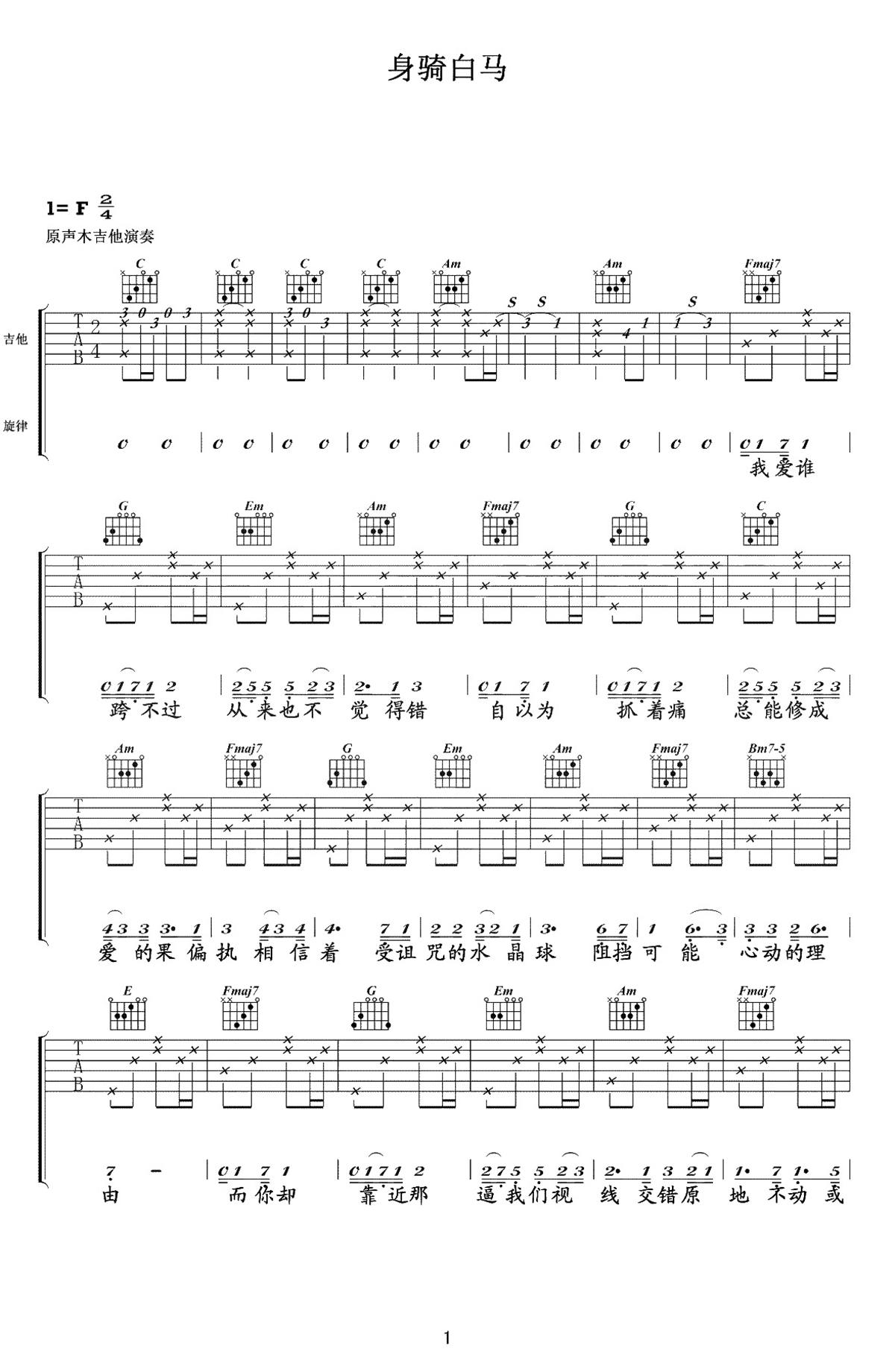身骑白马吉他谱 - 徐佳莹 - 吉他独奏谱