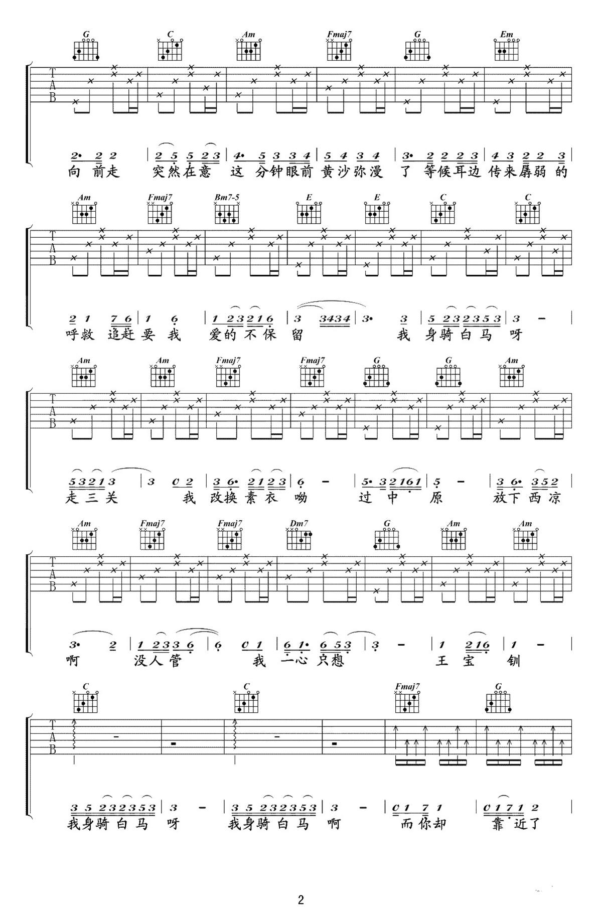 当前位置:琴谱网>吉他独奏>身骑白马