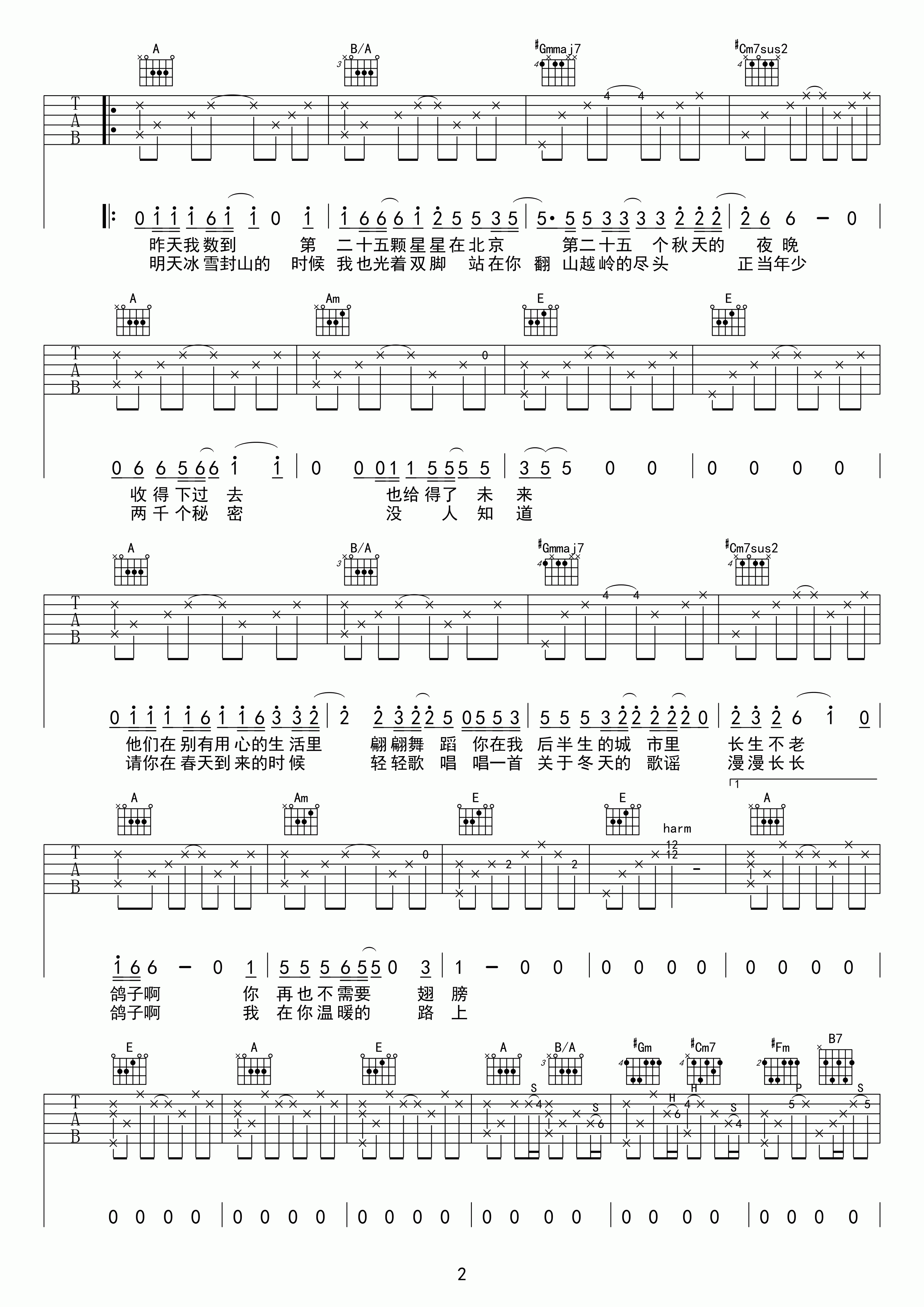 鸽子吉他谱 - 宋冬野 - 吉他独奏谱