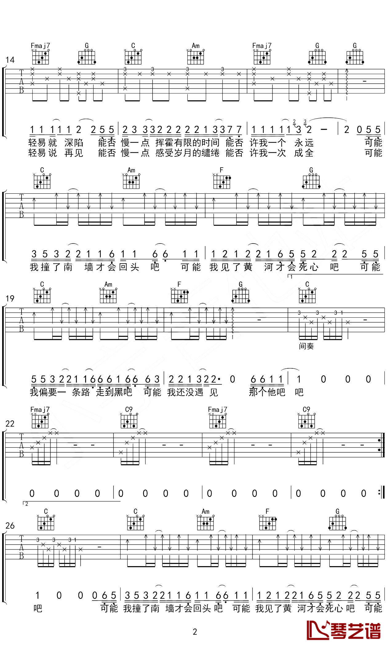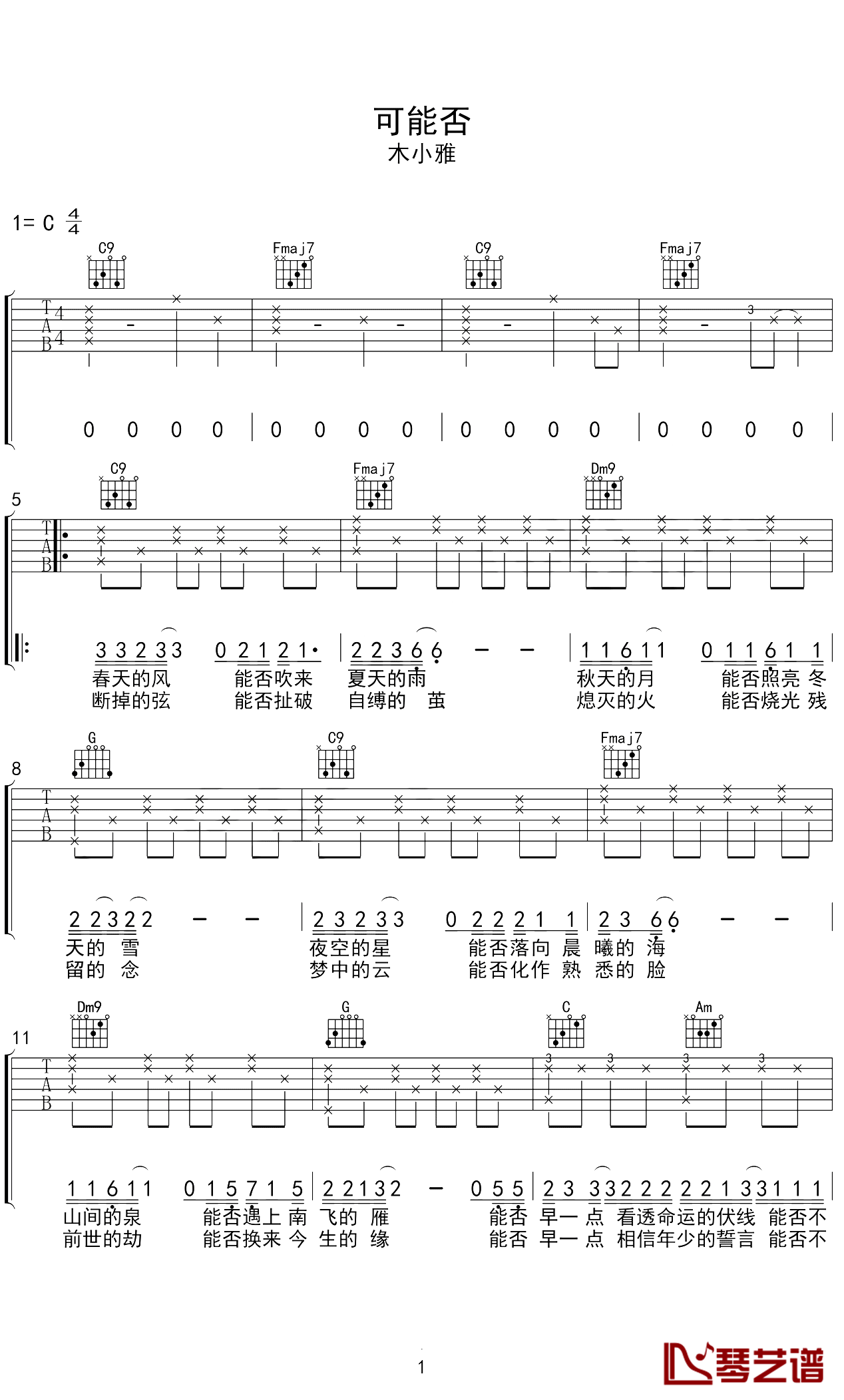 可能否吉他谱 - 木小雅 - C调吉他独奏谱