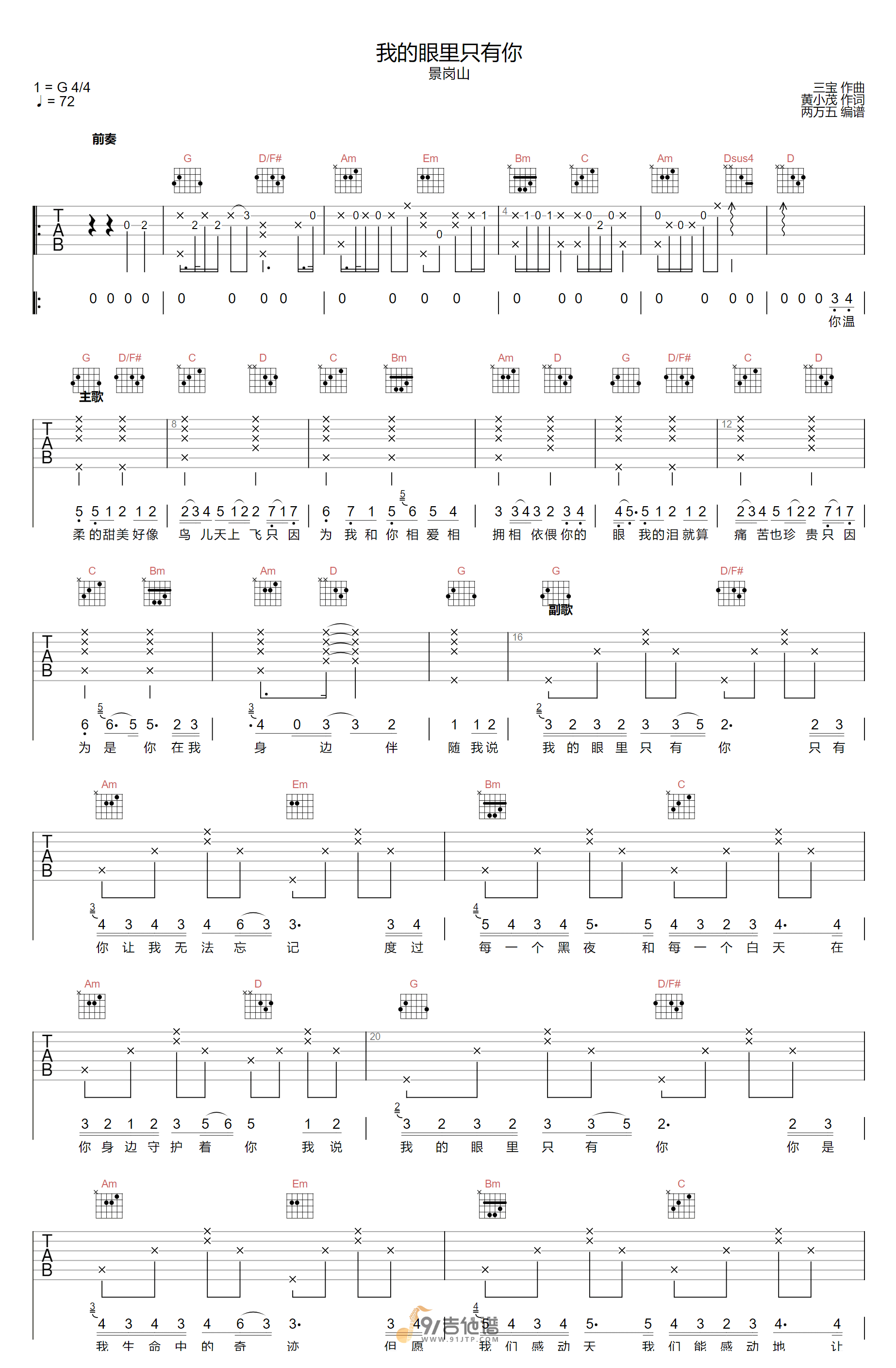 当前位置:琴谱网>吉他弹唱>我的眼里只有你