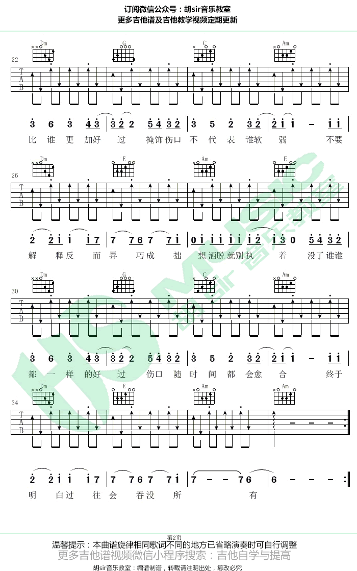 曲谱介绍: 任然《外愈》吉他谱,原调降E,选用C调指法,简单版弹唱谱,胡sir音乐教室编配出品,并带来吉他视频演示,91吉他谱上传分享。你带来的伤痛外愈就好 ,一首伤感的网络歌曲。