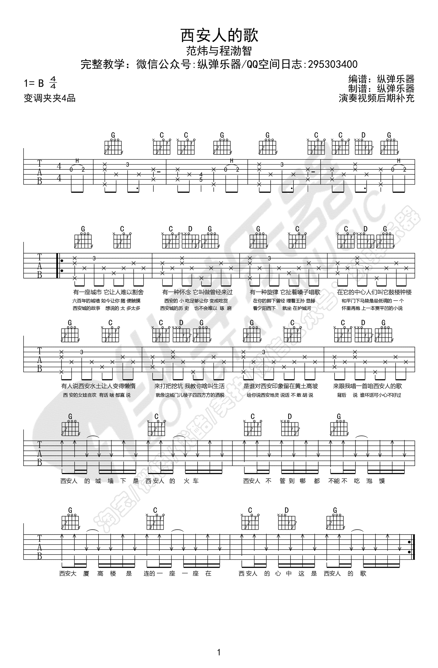 西安人的歌吉他谱 - 程渤智/范炜 - 吉他弹唱谱