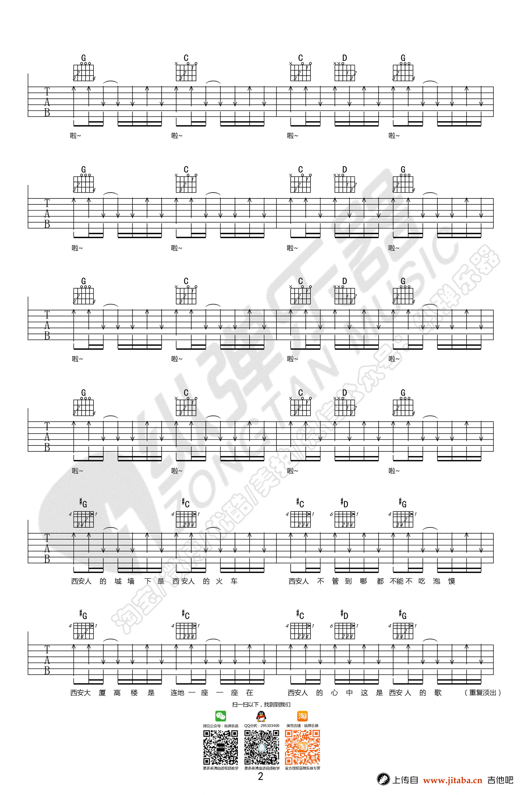 当前位置:琴谱网>吉他弹唱>西安人的歌