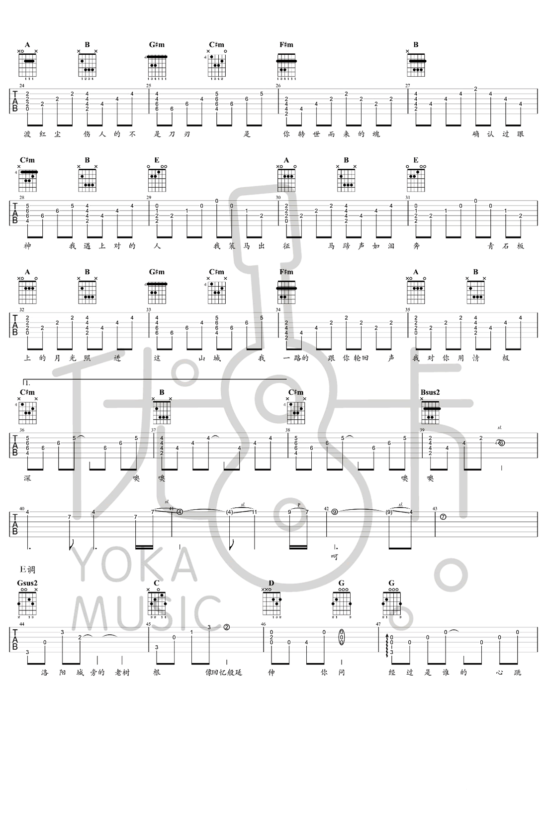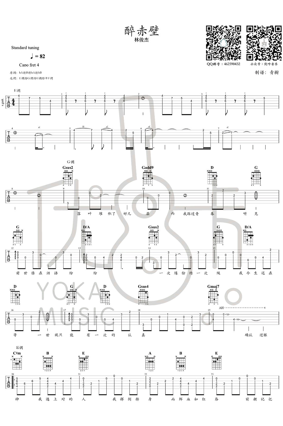 曲谱介绍: 林俊杰《醉赤壁》吉他谱,确认过眼神,我遇上对的人。一首十年前的老歌,如今在快手和抖音的加持下再次爆红,这离不开这首歌本身的优质,唯美古风歌词,由方文山执笔写下,再配上优美动人的旋律,很容易让人一听心动,再听倾心。醉赤壁吉他六线谱,三张图片谱,感谢优咔音乐编配出品,并为琴友们带来配套教学视频,91吉他谱网站推荐分享。