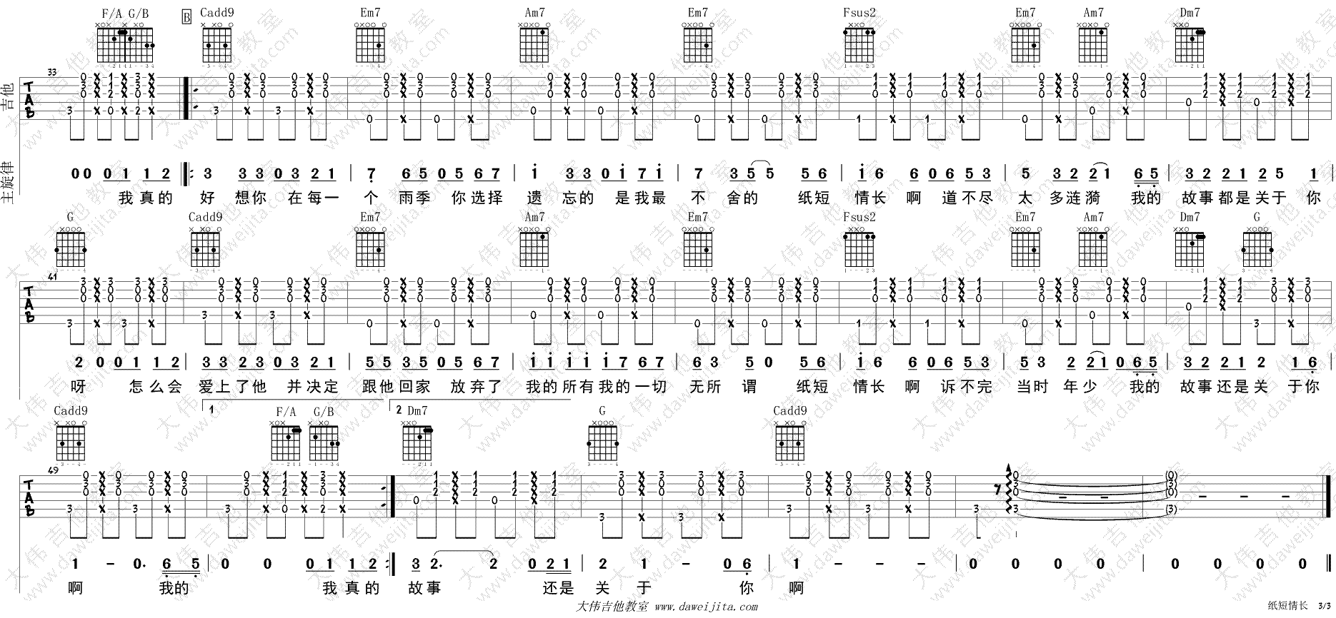 当前位置:琴谱网>吉他弹唱>纸短情长