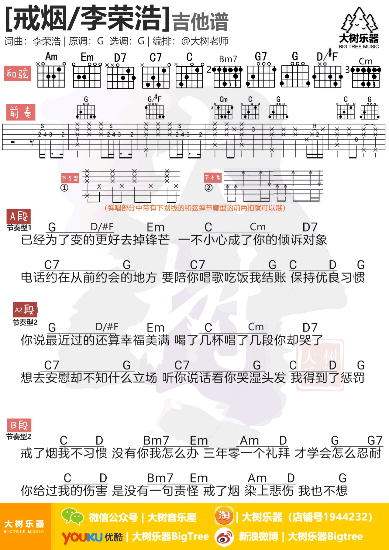 戒烟吉他谱 - 李荣浩 - G调吉他弹唱谱