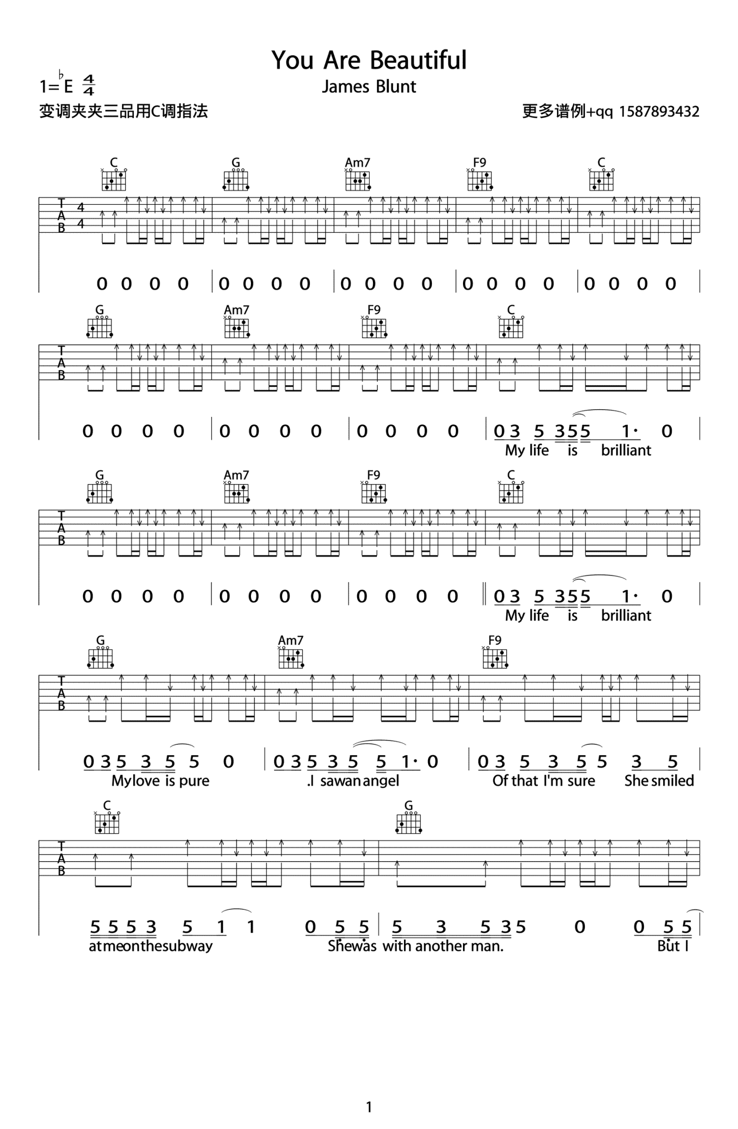 You Are Beautiful吉他谱 - James Blunt - C调吉他弹唱谱