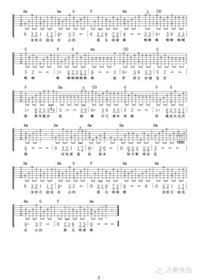 射雕英雄传吉他谱 - 主题曲 - 吉他独奏谱