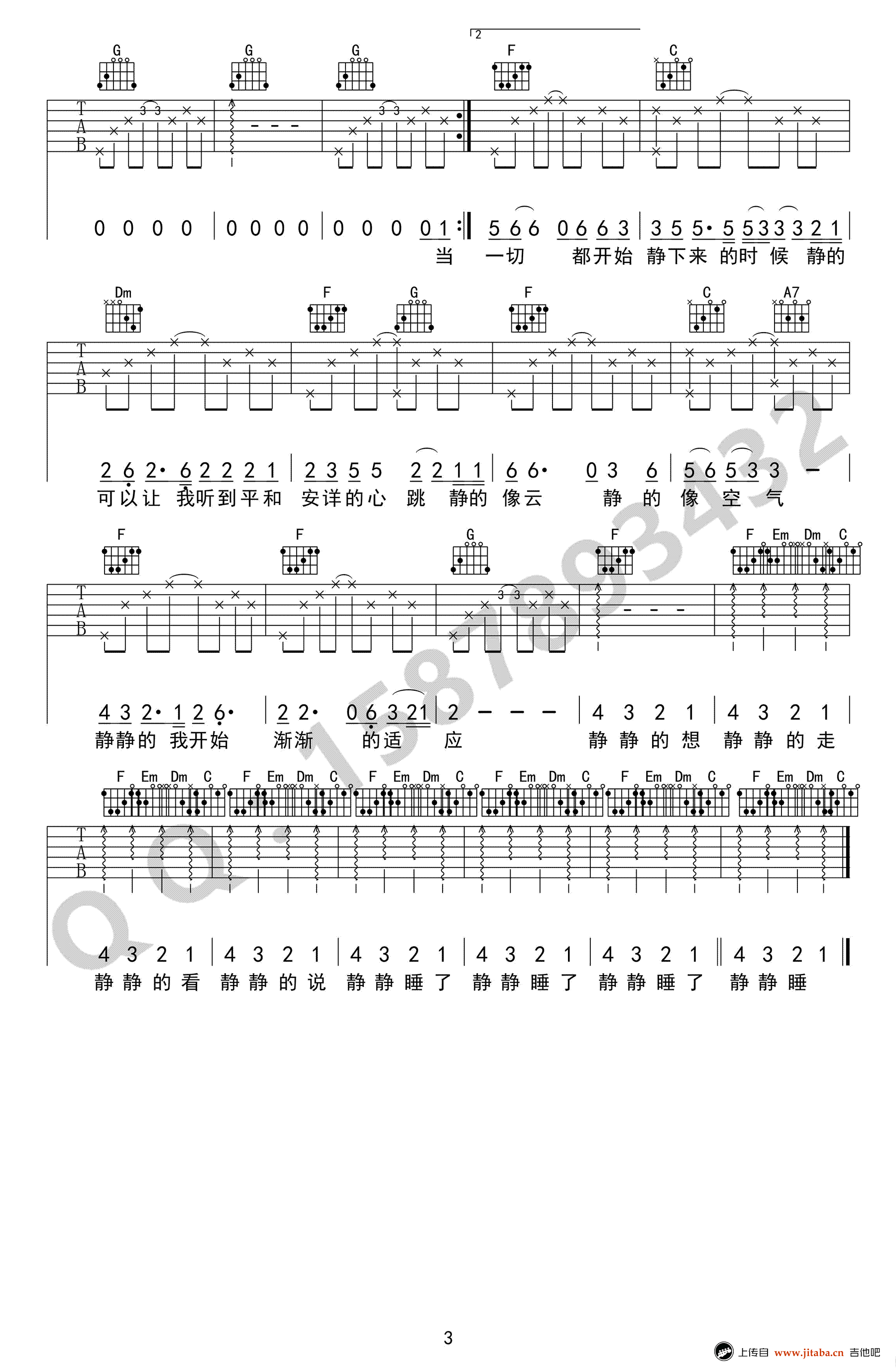 当前位置:琴谱网>吉他弹唱>静下来