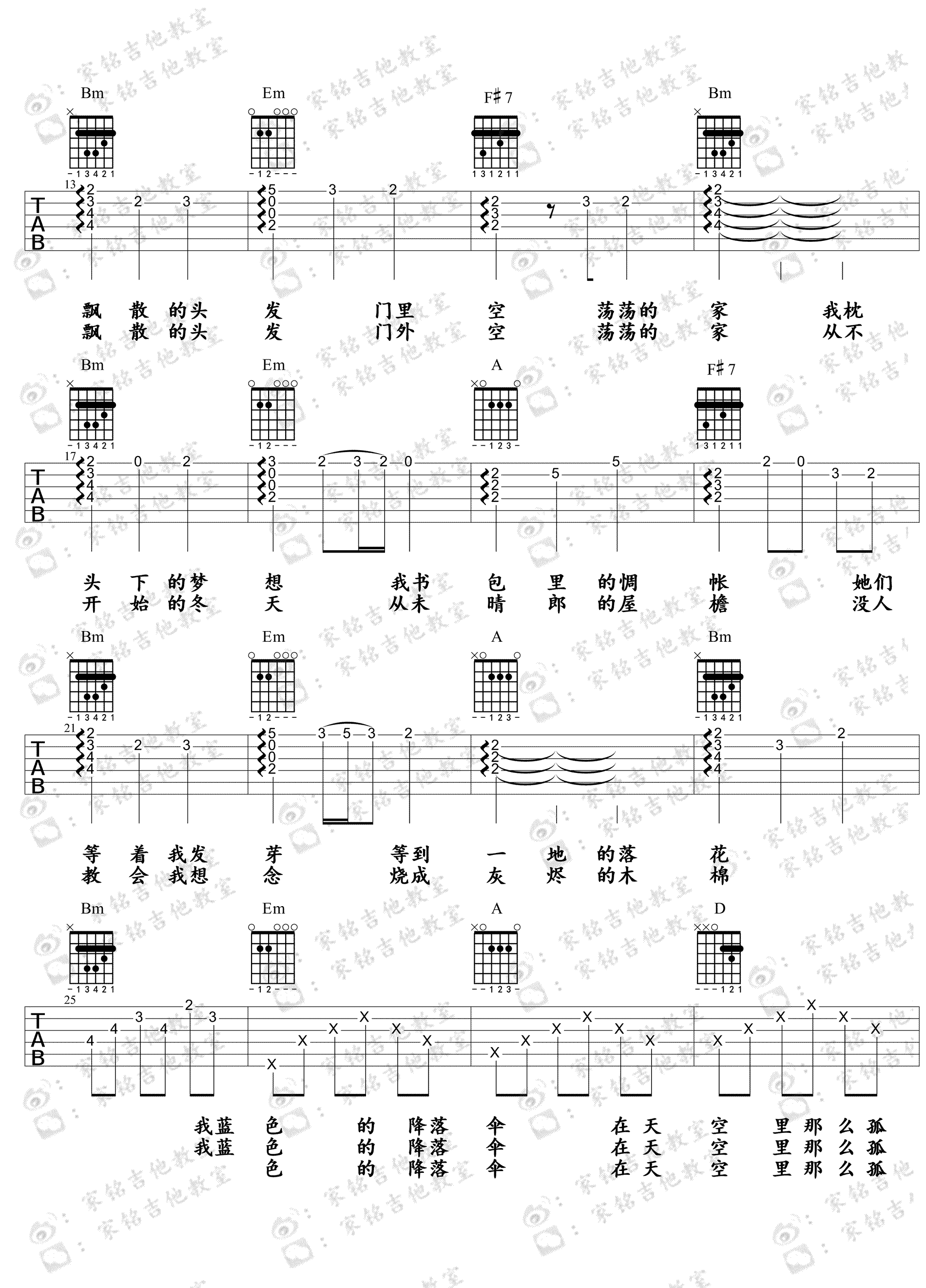 蓝色降落伞吉他谱 - 周深 - 吉他弹唱谱