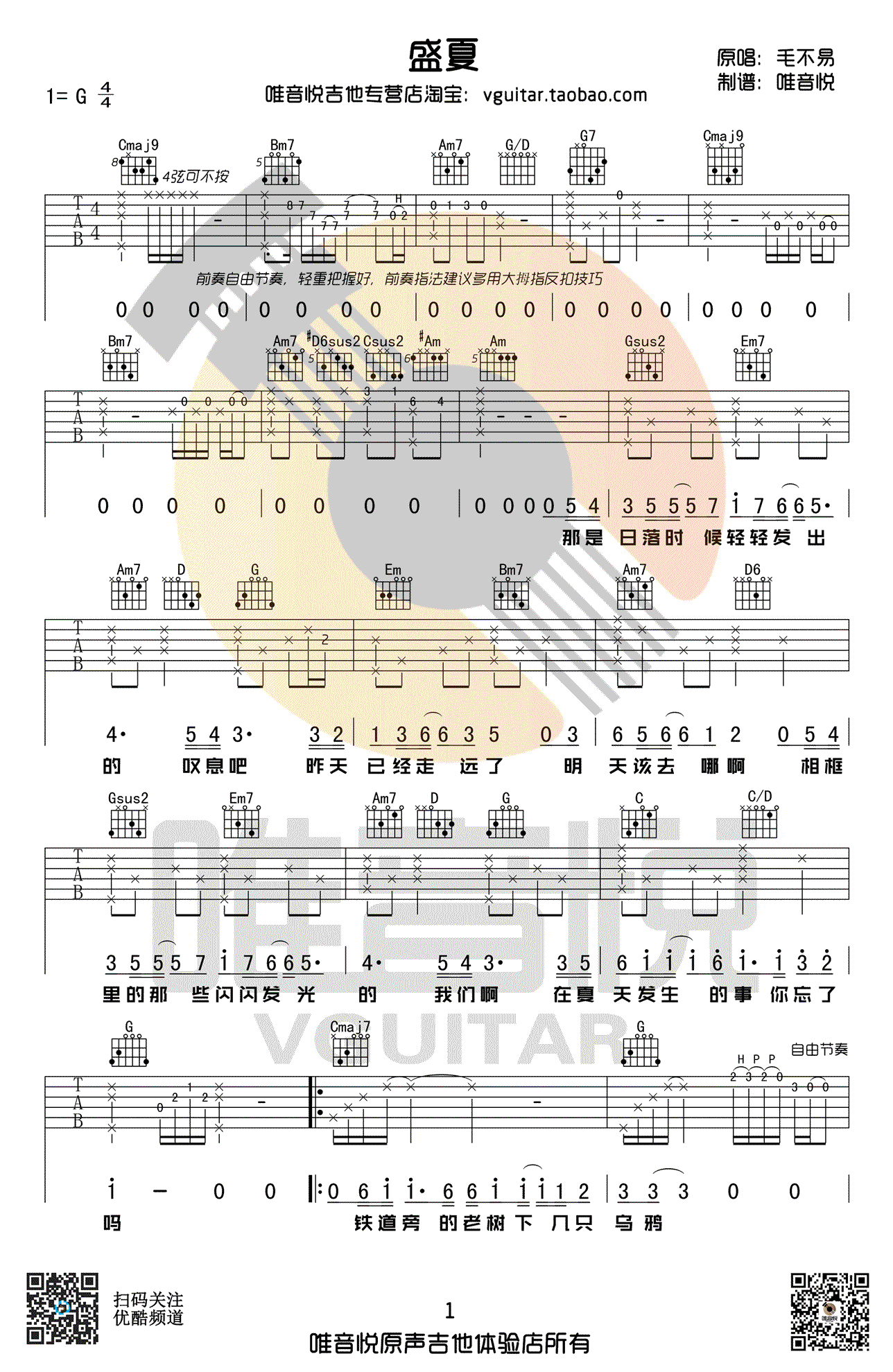盛夏吉他谱 - 毛不易 - G调吉他弹唱谱 - 原版