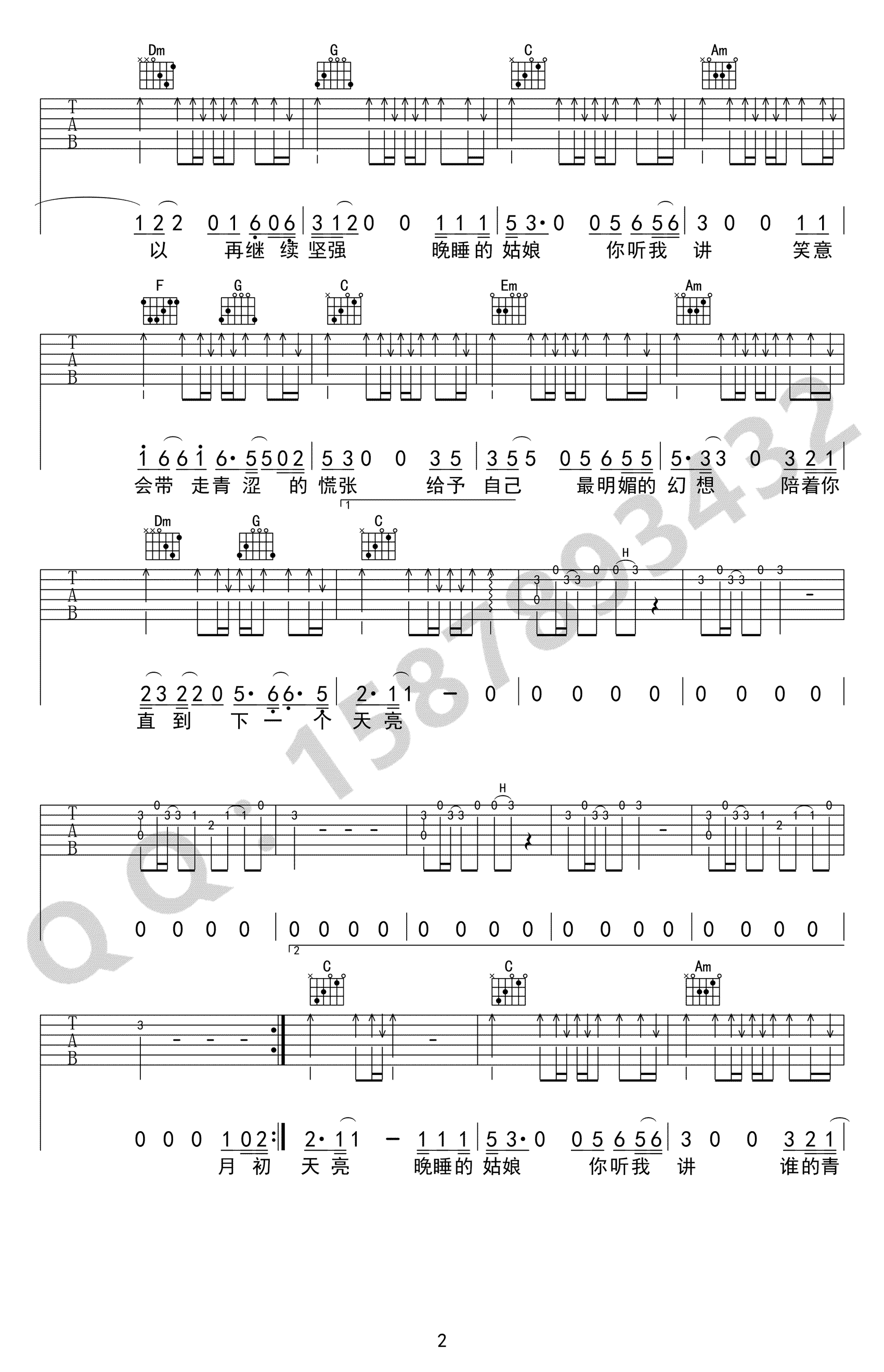 当前位置:琴谱网>吉他弹唱>晚睡的姑娘