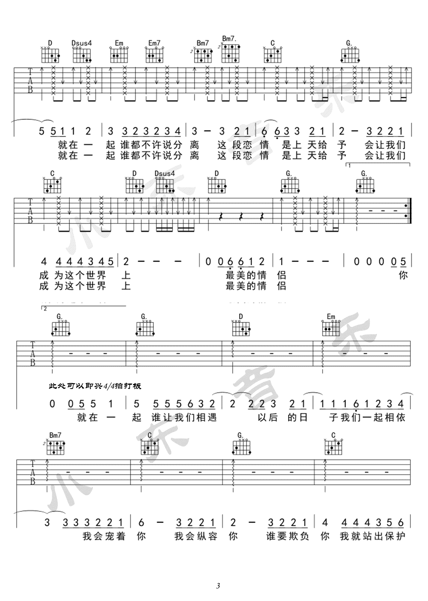 当前位置:琴谱网>吉他弹唱>最美情侣