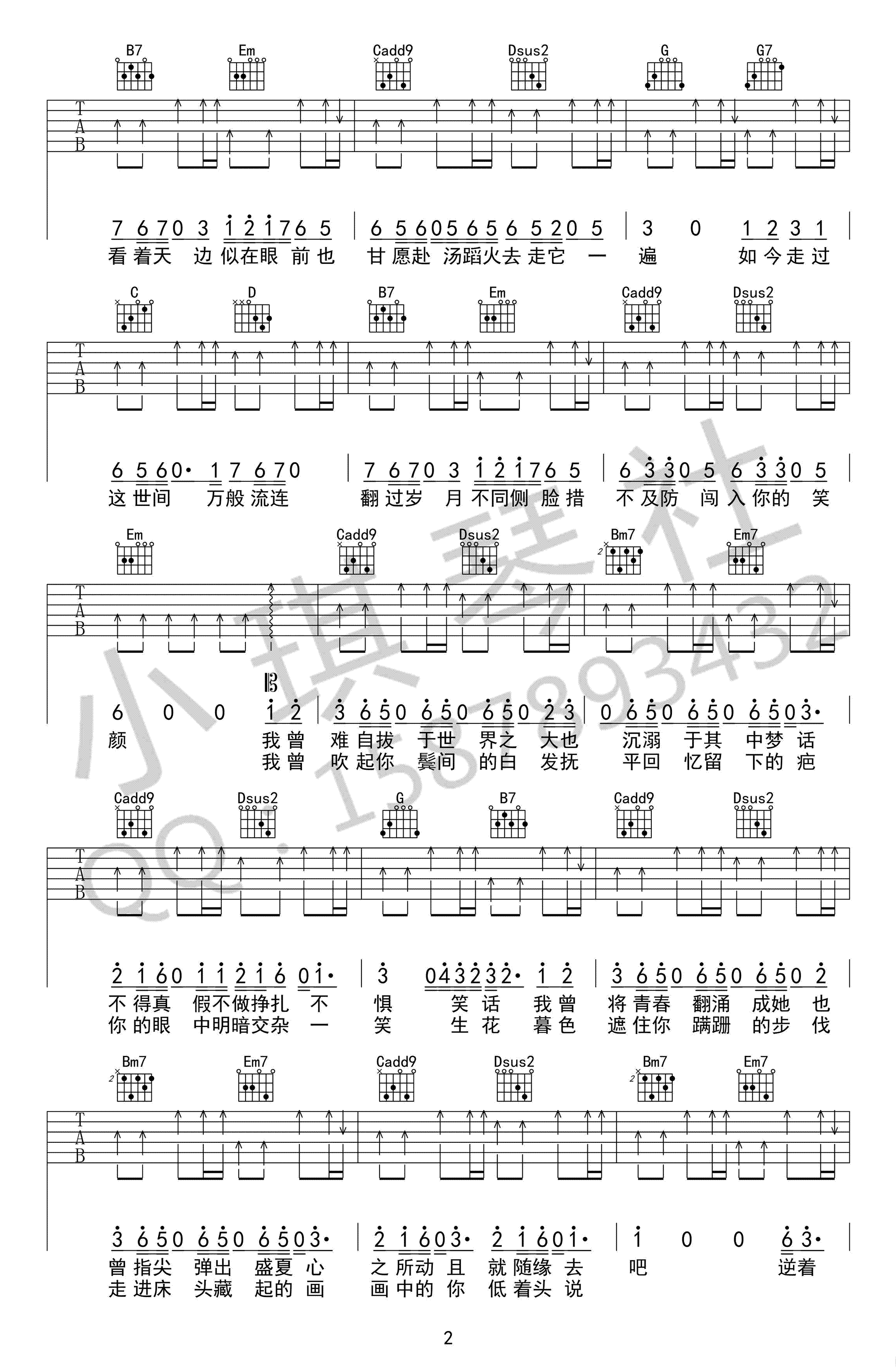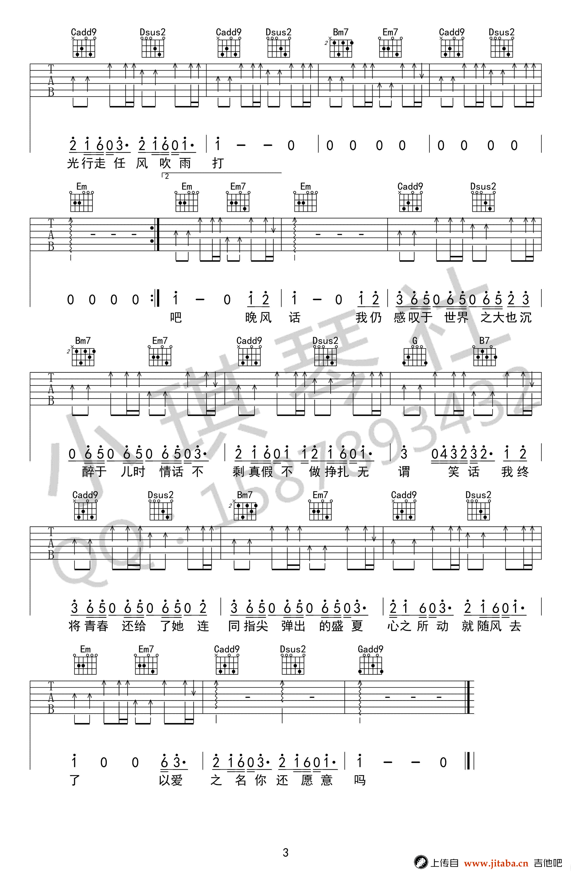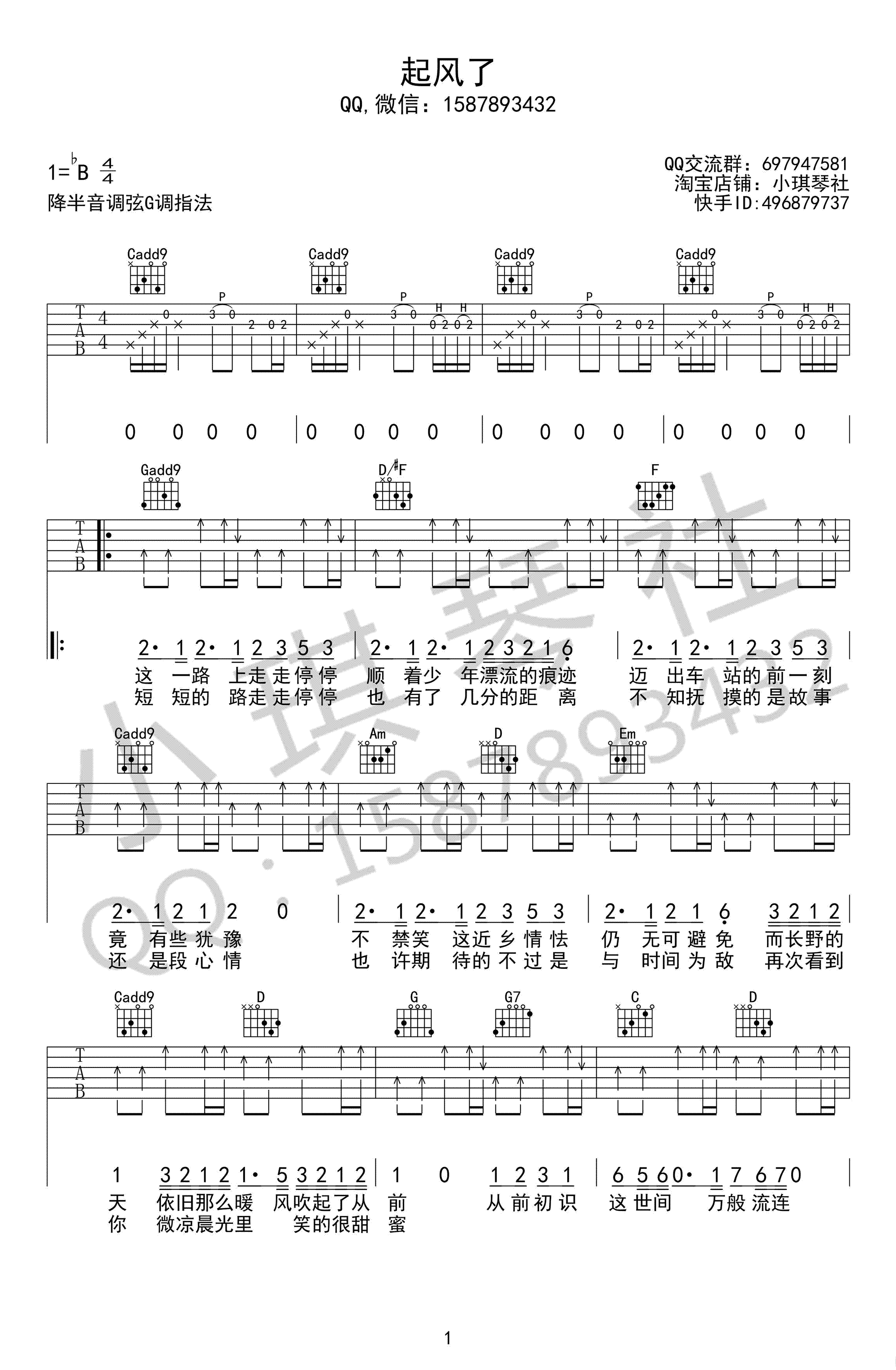 曲谱介绍: 起风了吉他谱,买辣椒也用券演唱,原调降B,降半音调弦G调指法,起风了六线谱,三张高清图片谱。感谢小琪琴社编配出品,91吉他谱网站上传推荐。 《起风了》是歌手买辣椒也用券 cover的高桥优《ヤキモチ》《吃醋》, 一首听了会爱上的翻唱,旋律与歌词都很明媚洒脱,明朗的韵律更加渲染了词的飘逸感,牢牢实实触动人心。起风了,我在等你,你在哪儿呢?