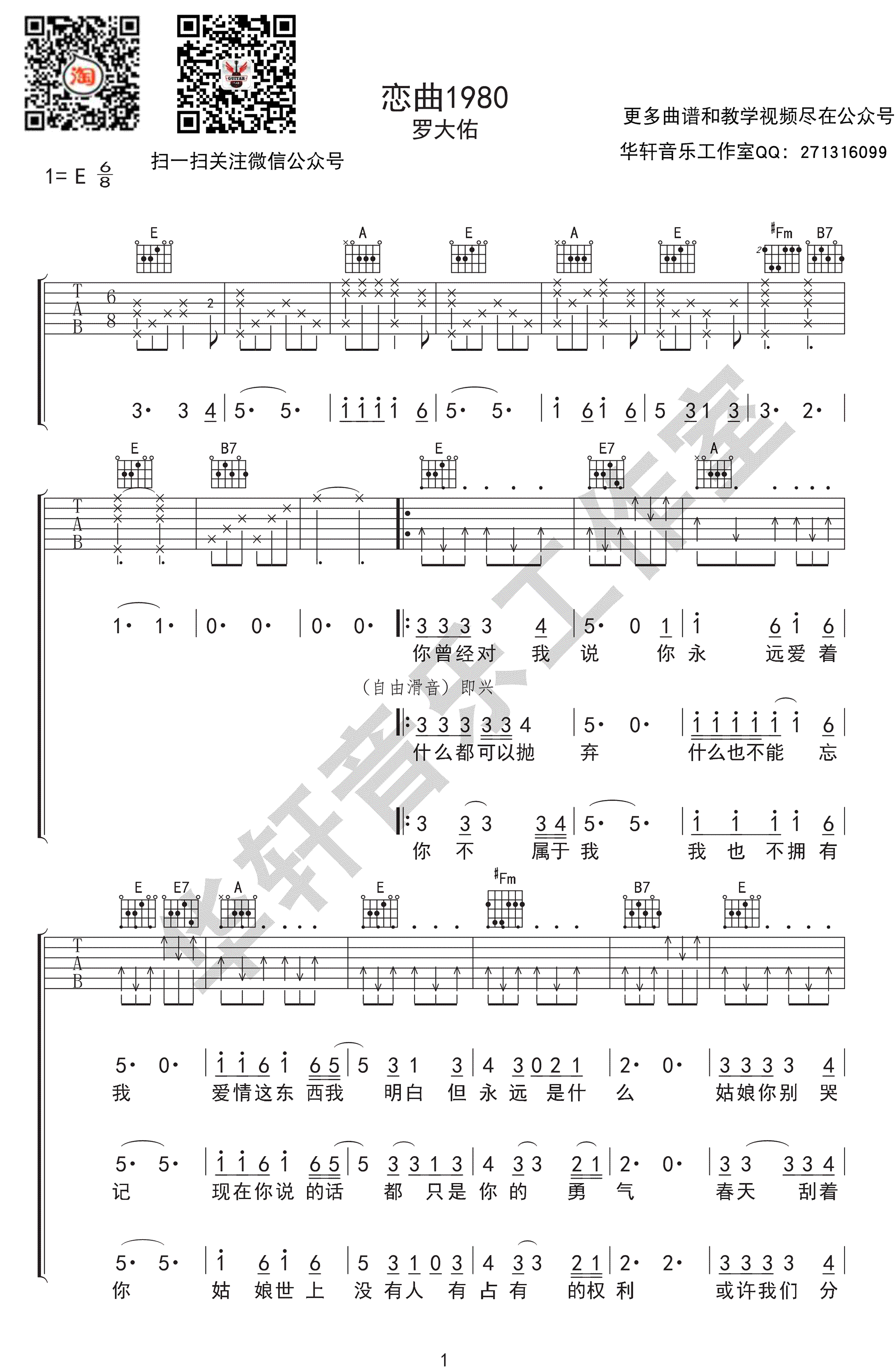 恋曲1980吉他谱 - 罗大佑 - 吉他弹唱谱