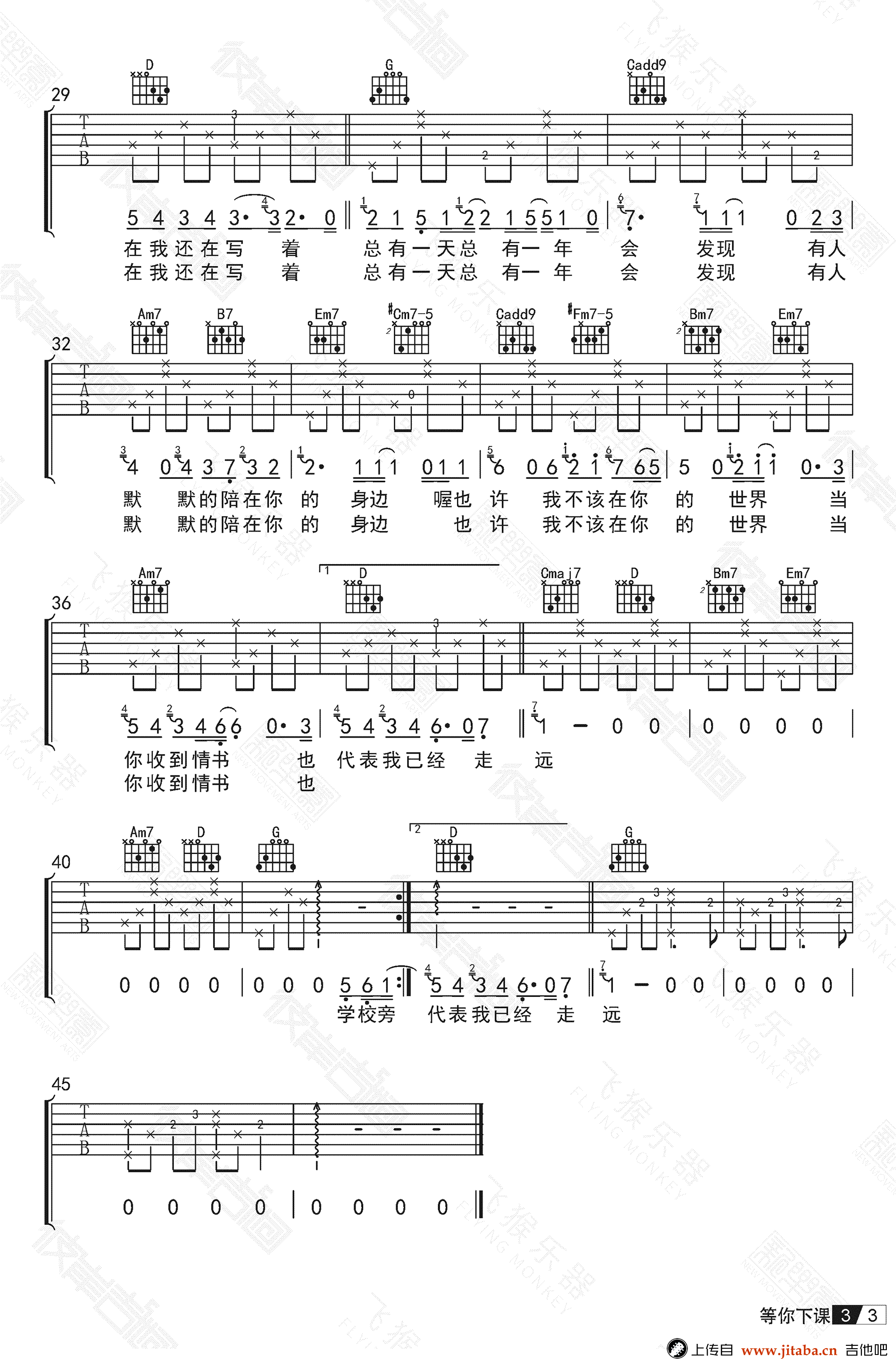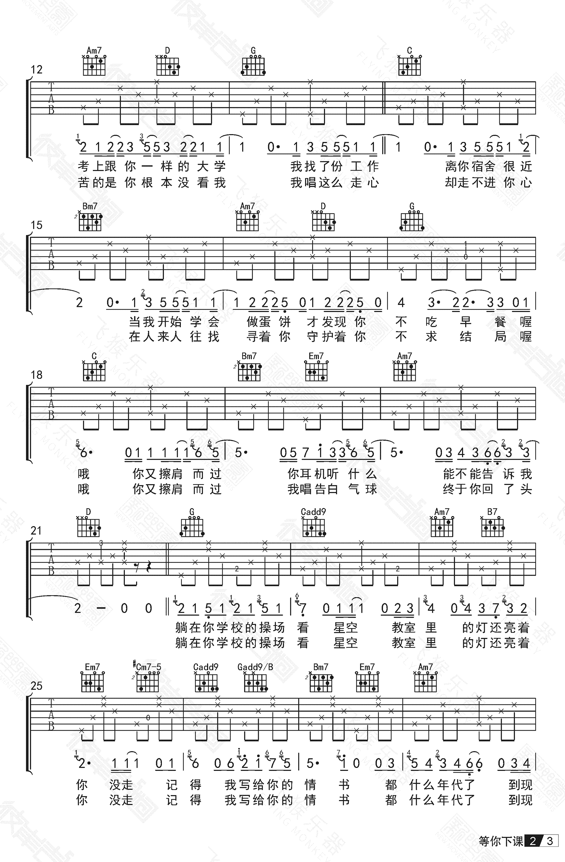 等你下课吉他谱 - 周杰伦 - 吉他弹唱谱