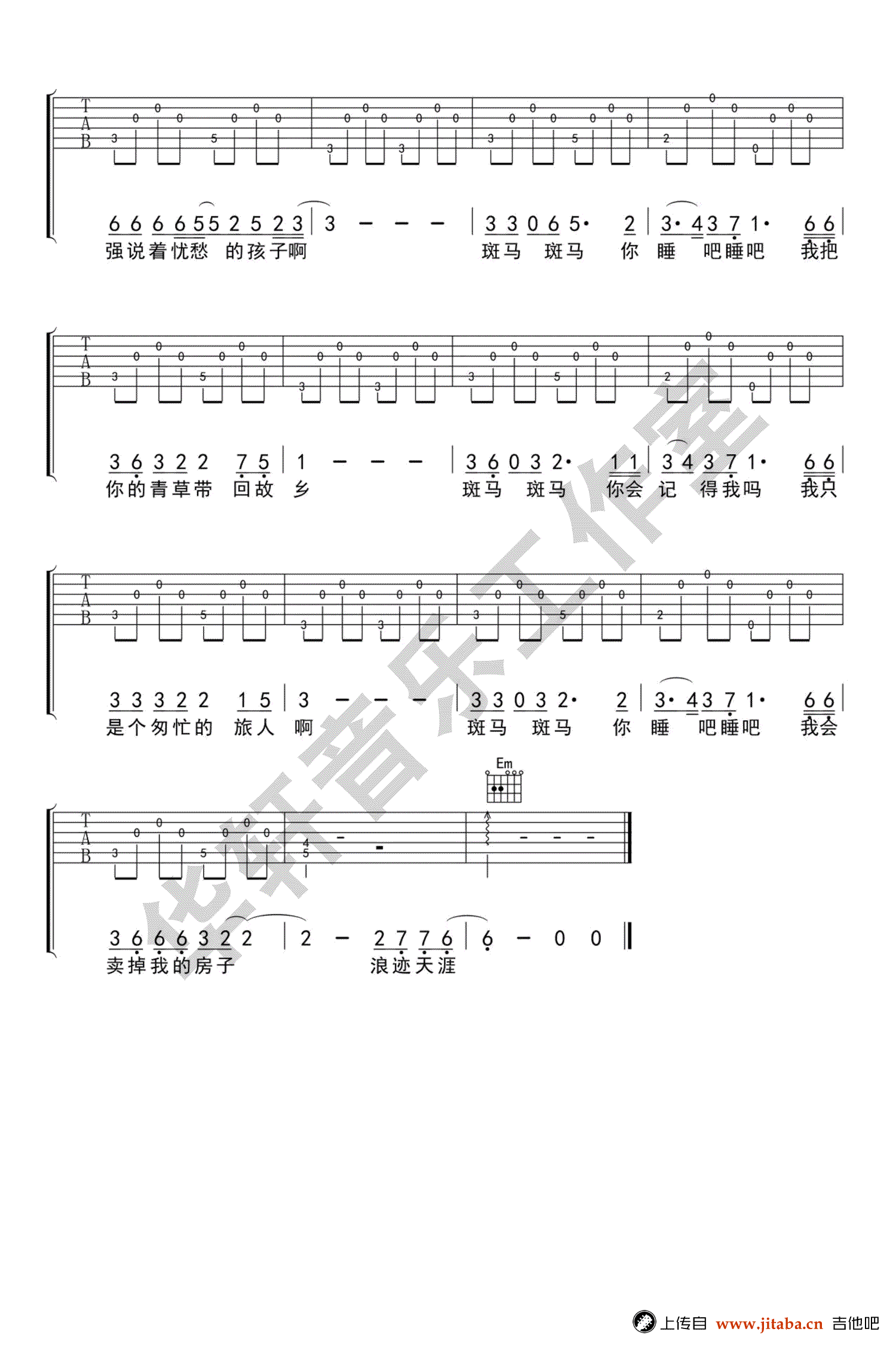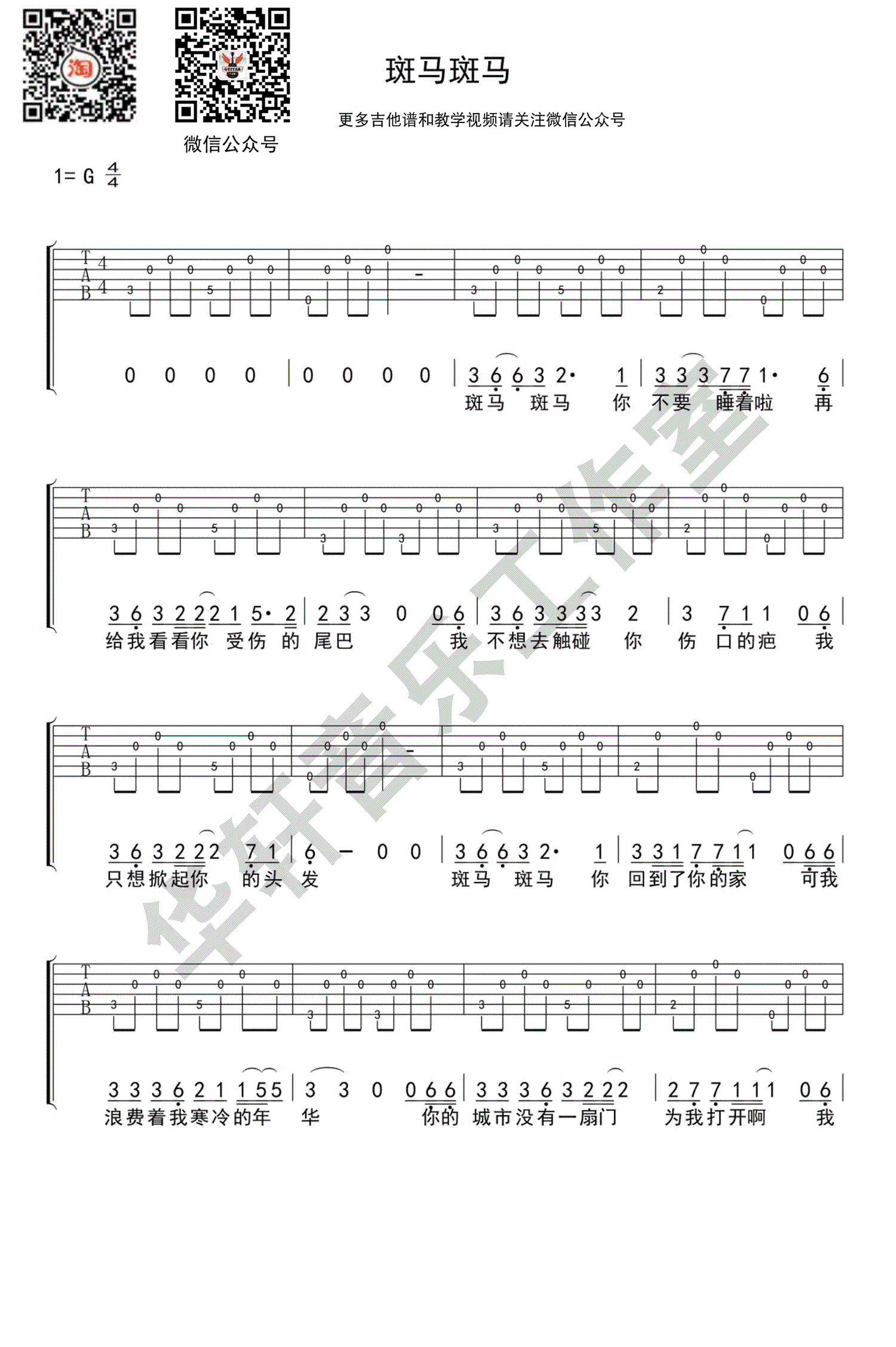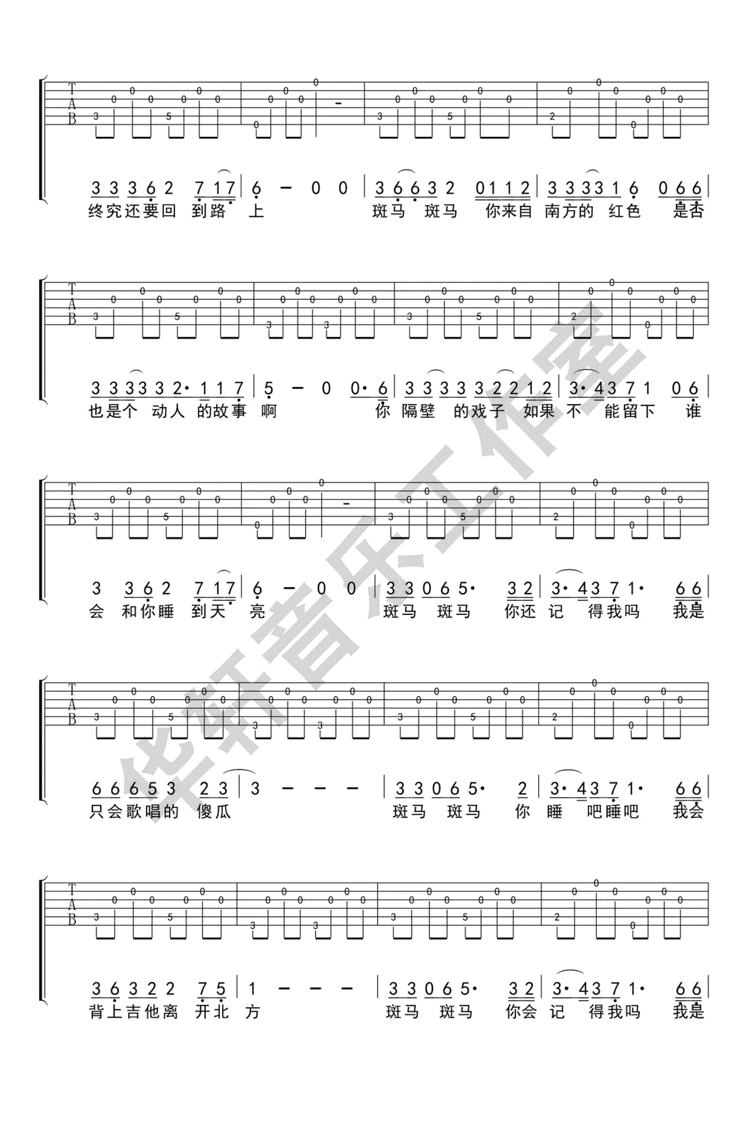 当前位置:琴谱网>吉他弹唱>斑马斑马