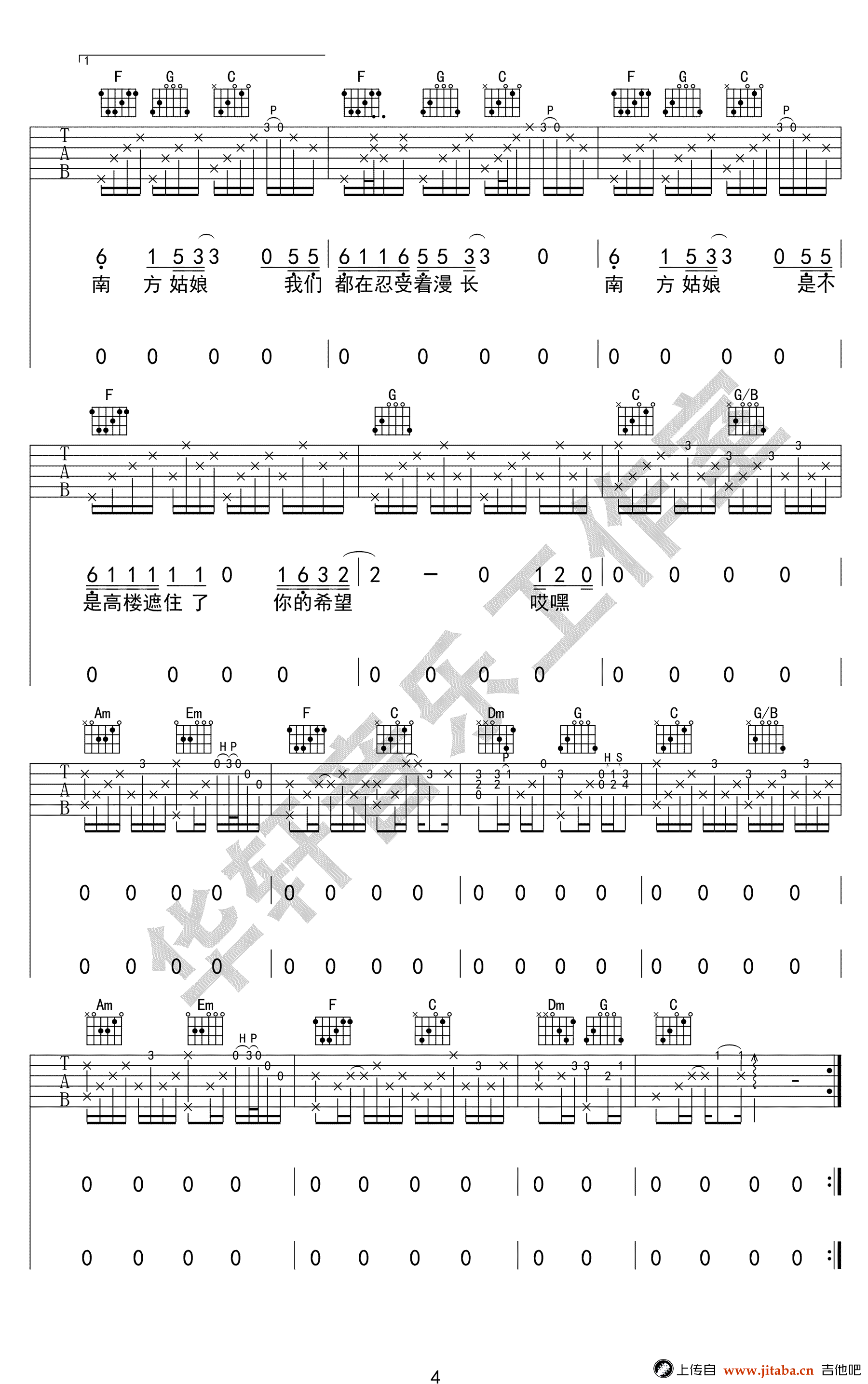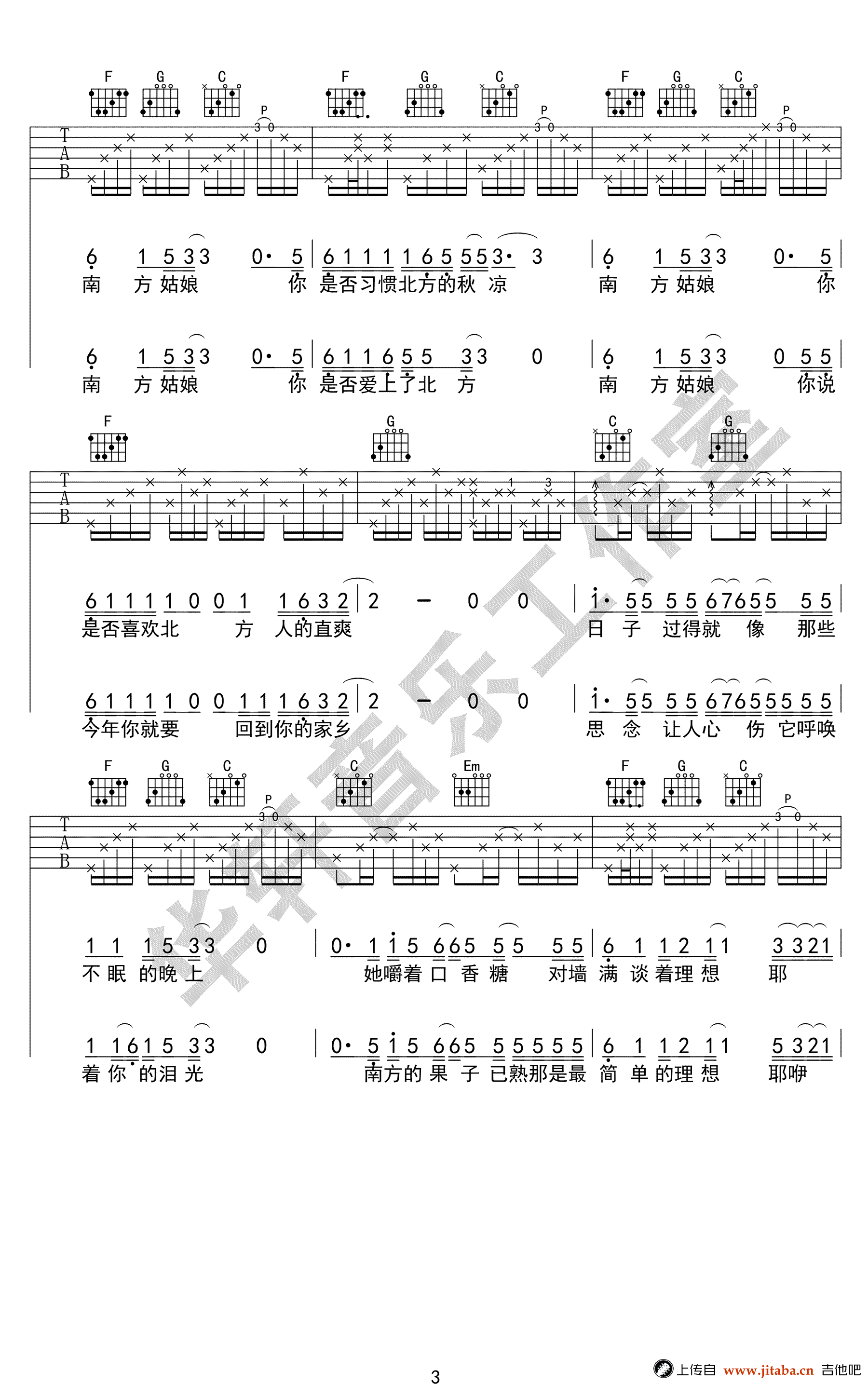 当前位置:琴谱网>吉他弹唱>南方姑娘
