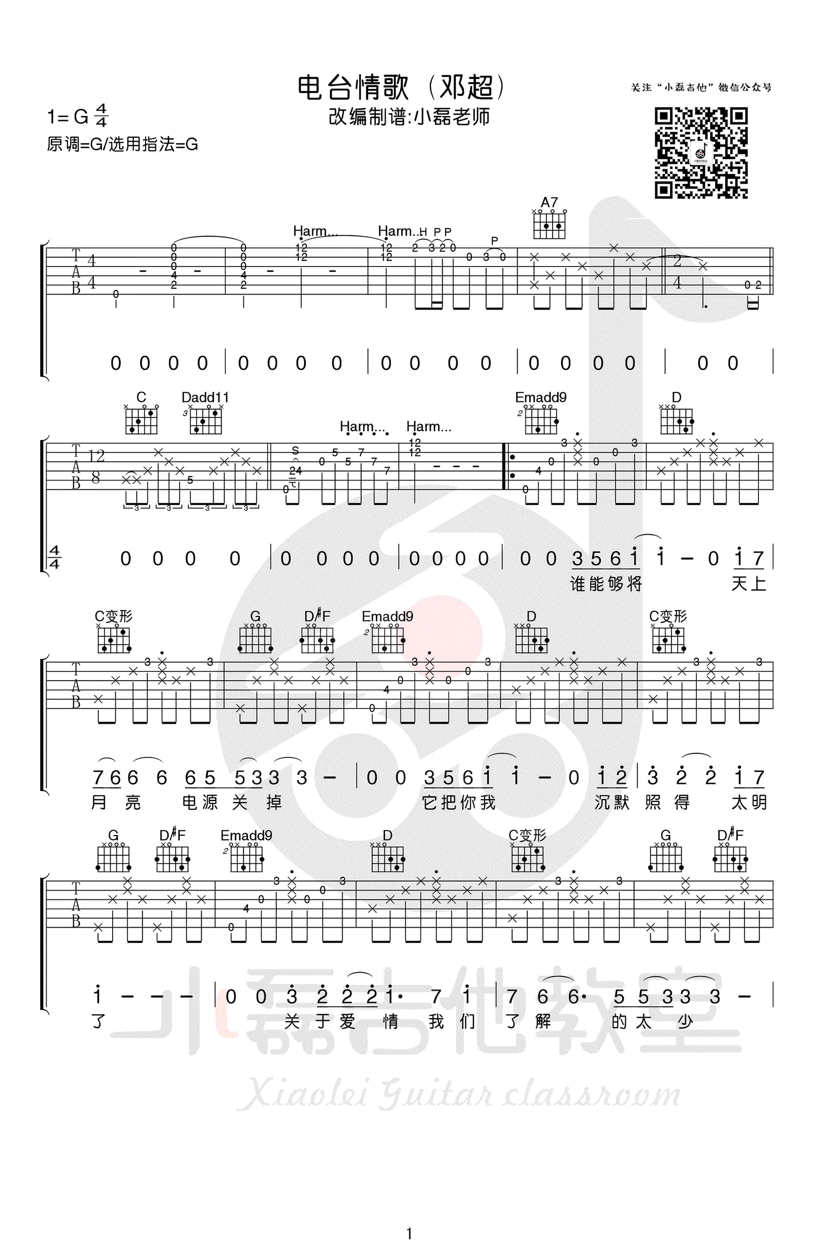 曲谱介绍: 电台情歌吉他谱,G调指法,电影《从你的全世界路过》主题曲,邓超演唱版本,电台情歌六线谱,三张弹唱图片谱,感谢小磊吉他编配出品,91吉他谱上传。电台情歌男生版,深情细腻的歌声,演绎翻唱莫文蔚的经典歌曲,一如在爱人的耳边低语倾诉,那些温柔的情话。 电台情歌前奏吉他教学视频: