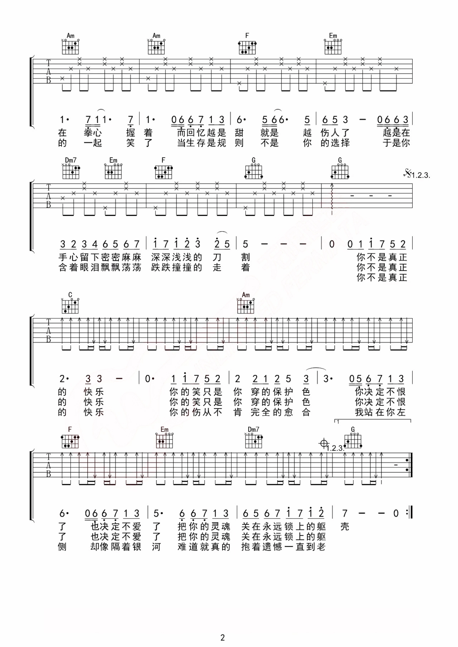 吉他弹唱C调来源:无限延音6498 浏览2019-12-31 17:48发布图谱共3页
