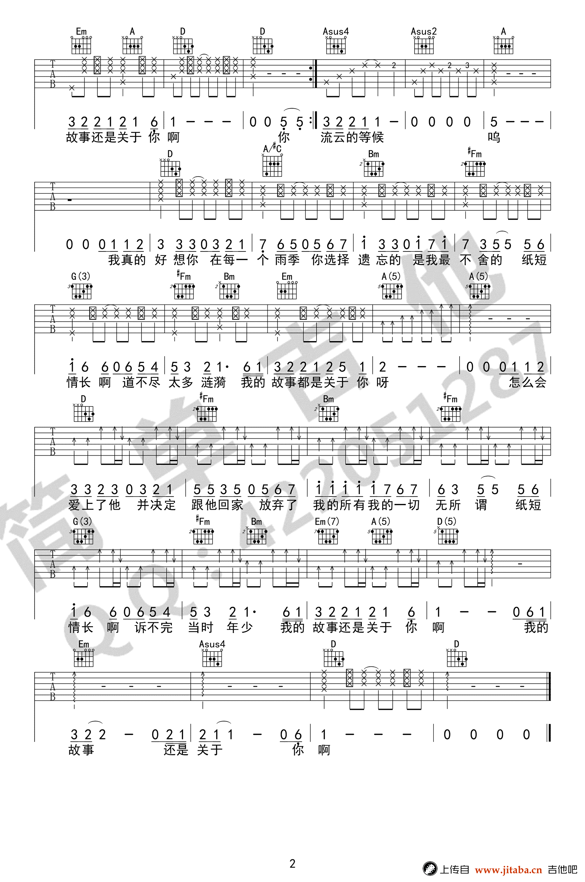 当前位置:琴谱网>吉他弹唱>纸短情长