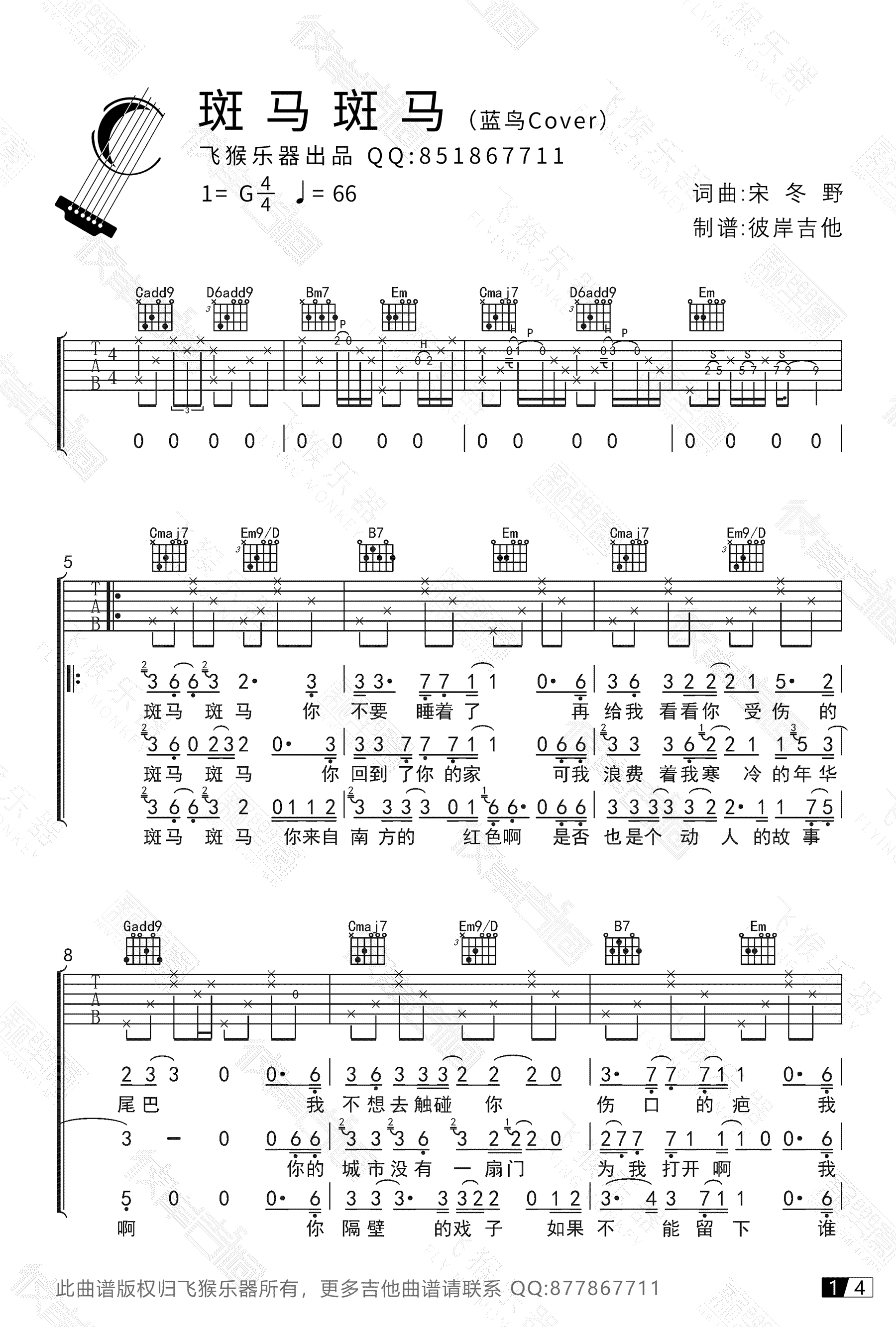 当前位置:琴谱网>吉他弹唱>斑马斑马