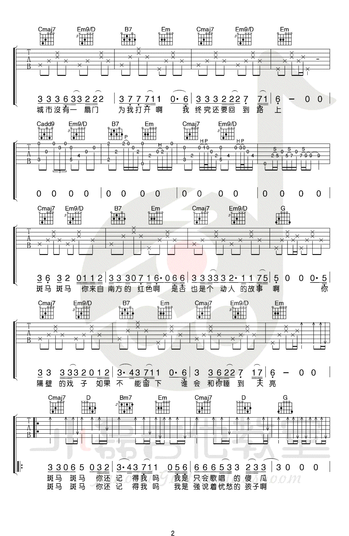 斑马斑马吉他谱 - 宋冬野 - 吉他弹唱谱 - 原版