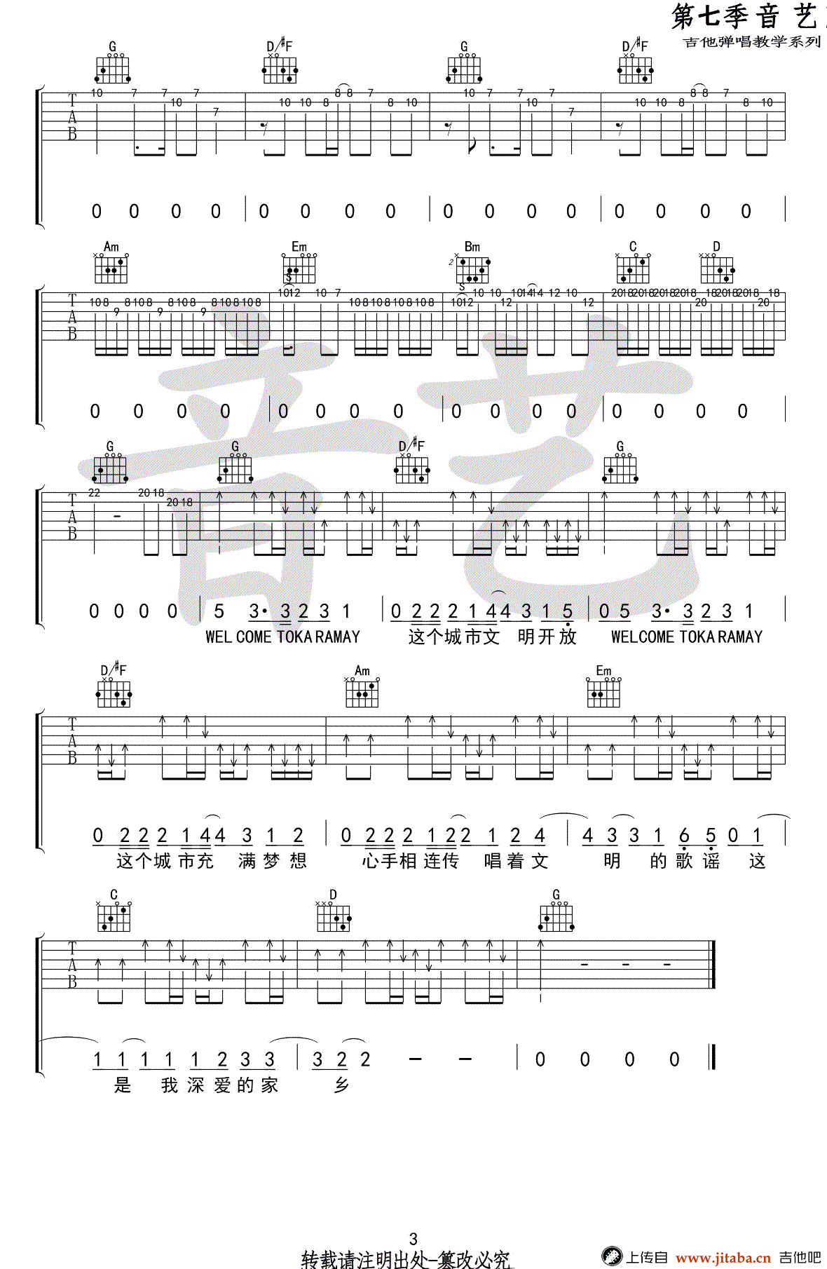 当前位置:琴谱网>吉他弹唱>Welcome to karamay