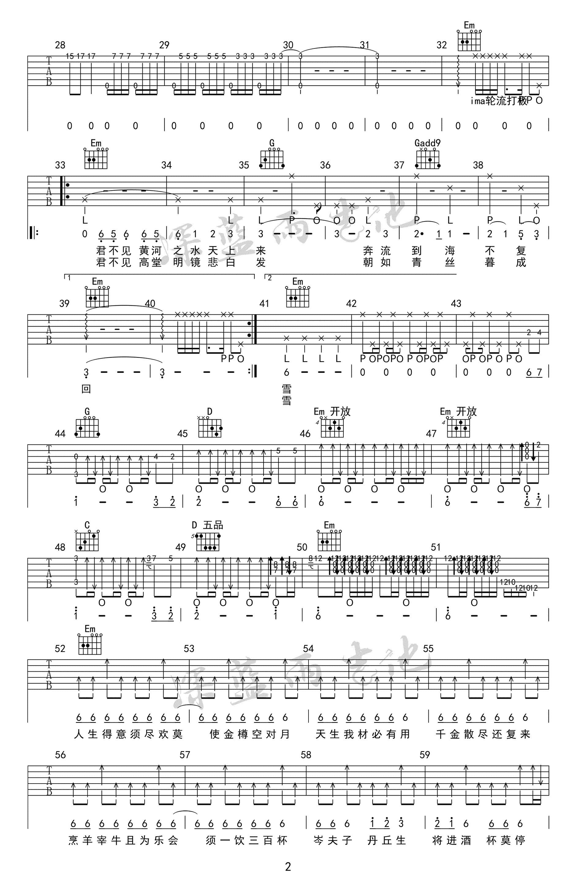 当前位置:琴谱网>吉他弹唱>将进酒
